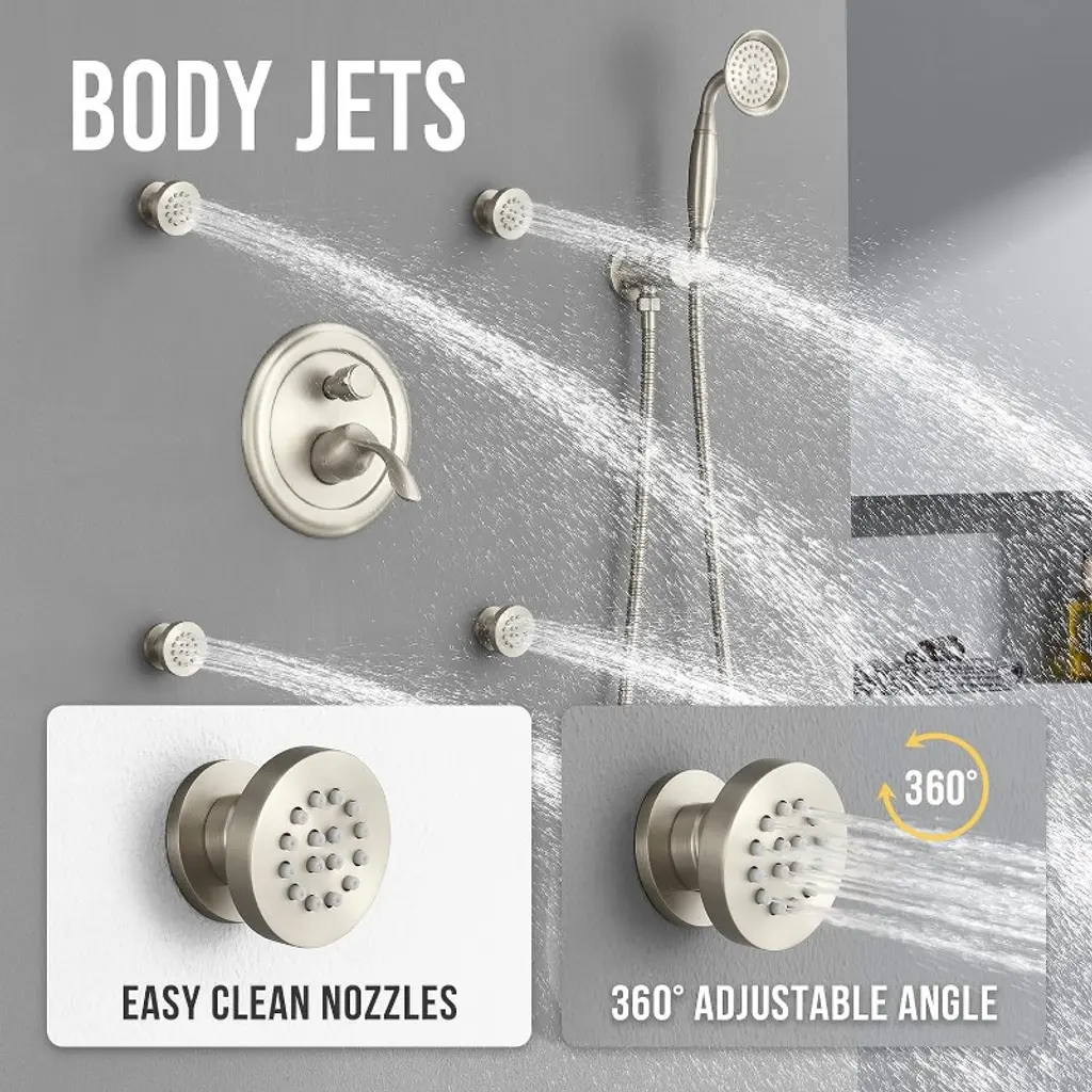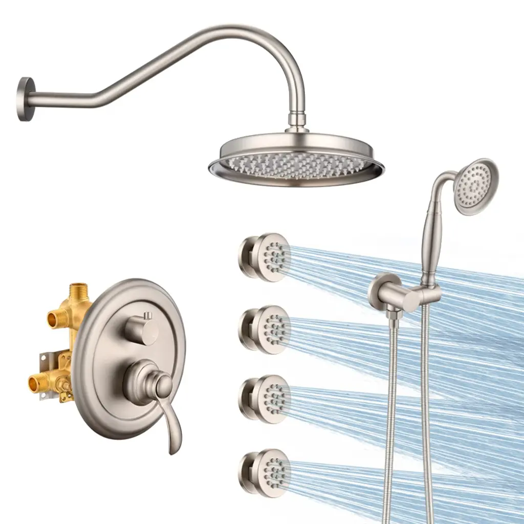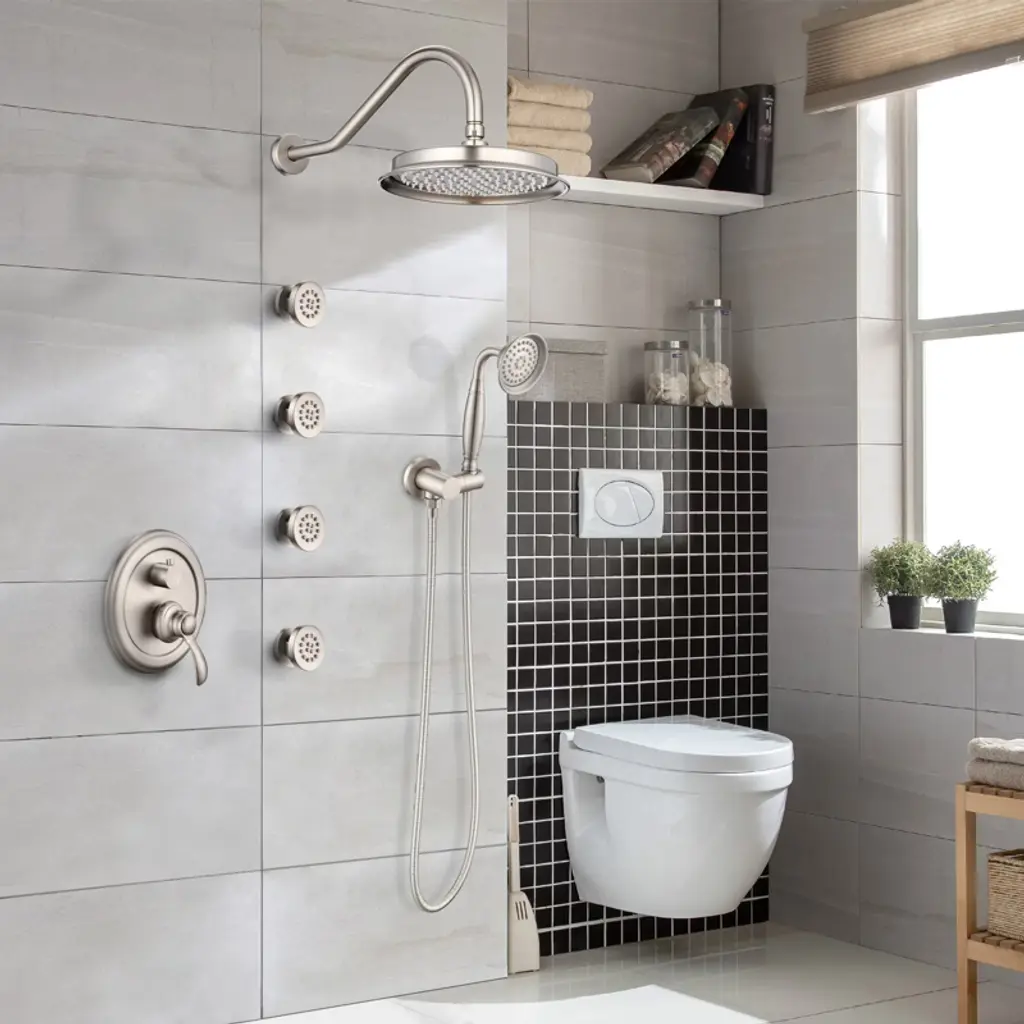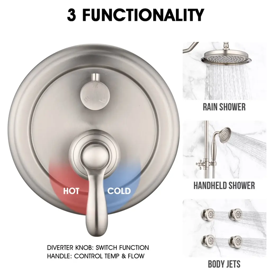 Proox Double Handle 3-spray Antique-style Shower Faucet With Body Sprays And Antique Handheld In. Brushed Nickel