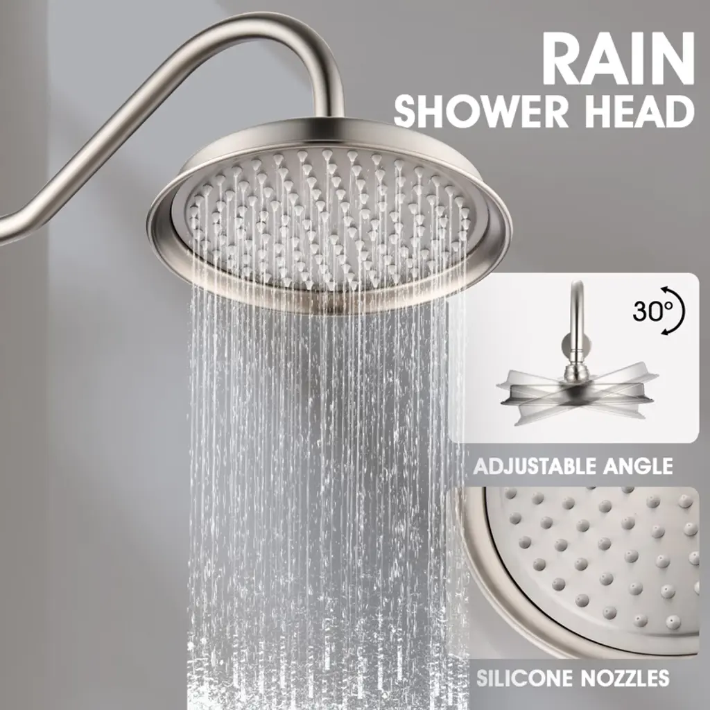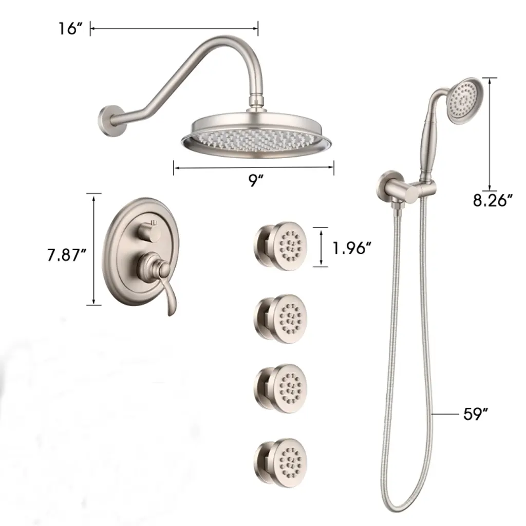 The PROOX Rainfall Shower System is designed to provide a luxurious and soothing soaking experience. It features 4-body sprays that gently caress the body, while the hand shower is perfect for manual use. The entire shower faucet can be mounted onto your wall, making it an ideal choice for both large and compact bathrooms. This shower system combines an antique look with modern luxury and will add a touch of elegance to any bathroom.
