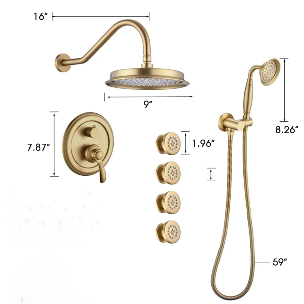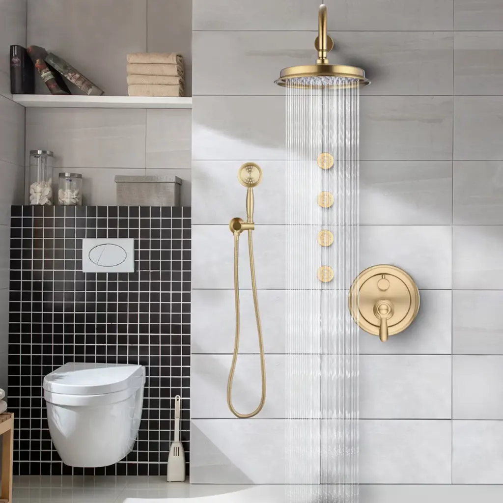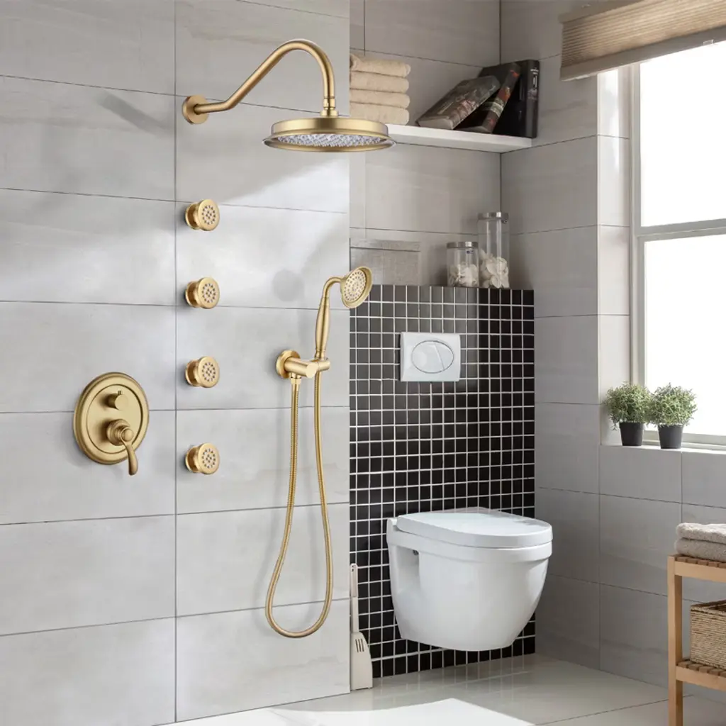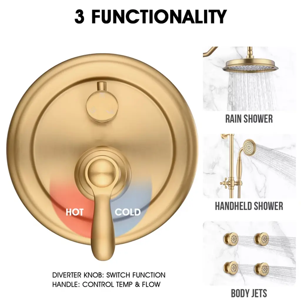 Proox Double Handle 3-spray Antique-style Shower Faucet With Body Sprays In. Brushed Gold