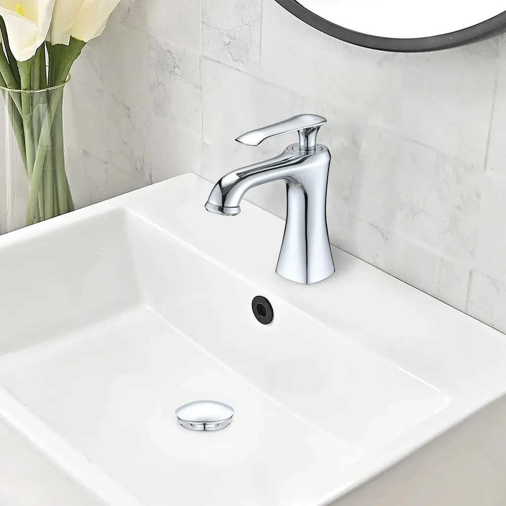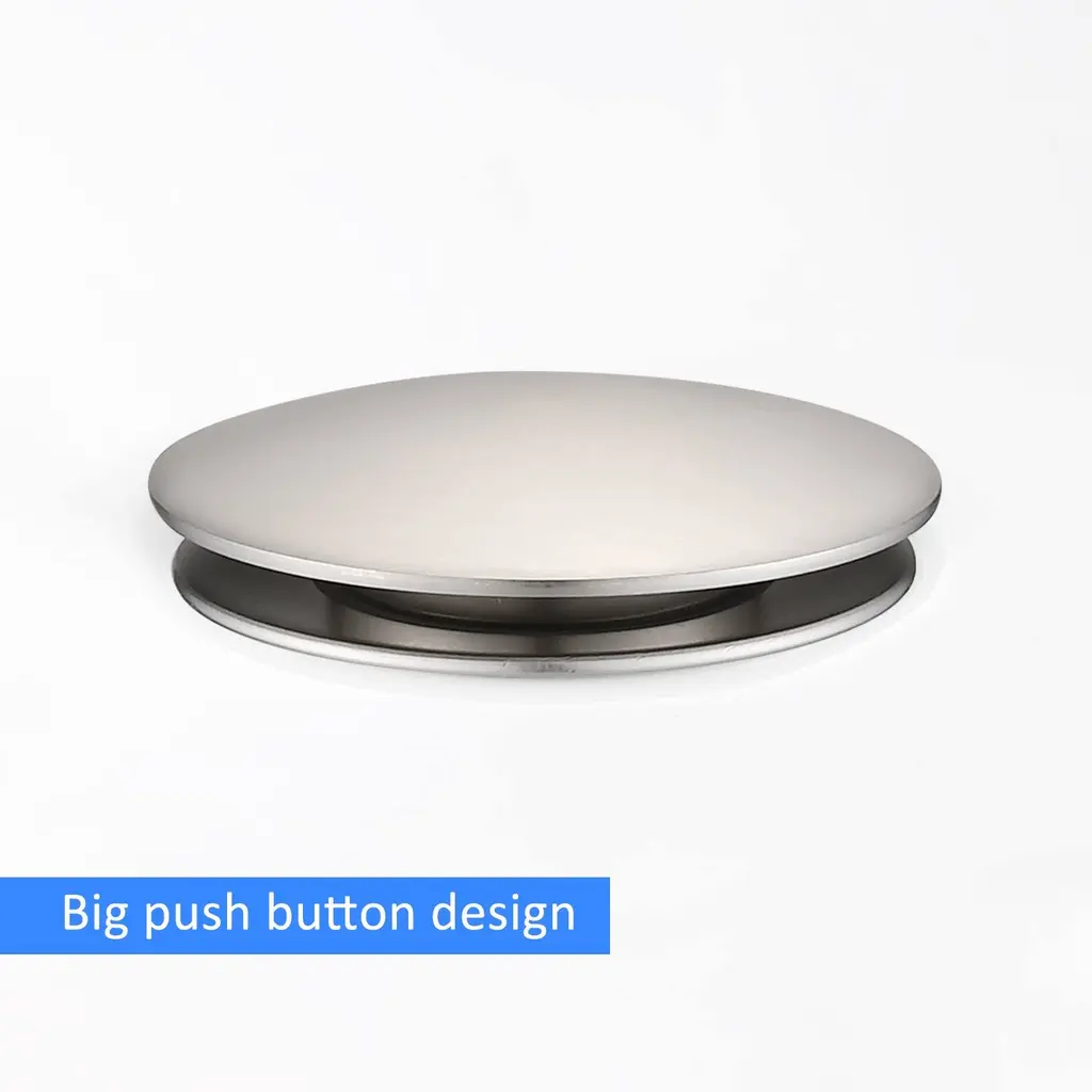 This bathroom sink drain with overflow is designed for sinks with overflow holes.pop up drain stopper for bathroom sink is crafted from premium metal ensuring exceptional durability.Anyone can install a pop up drain due to its simple construction, no tools required, the thickened and extended nut allow it to be mounted by bare hand. Features: The anti-clogging drain filter efficiently traps debris from clogging drain pipes. Spring loaded push button does not require a lift rod. Simply push the drain cap down to close and seal, push it again to open and drain water. You can turn the upper cap counter-clockwise to unscrew and remove. Silicone Washer is better sealing and more durable. Dimensions: OverallHeight :8" Overflow: Yes Pop-up Drain: Yes. Material: Metal