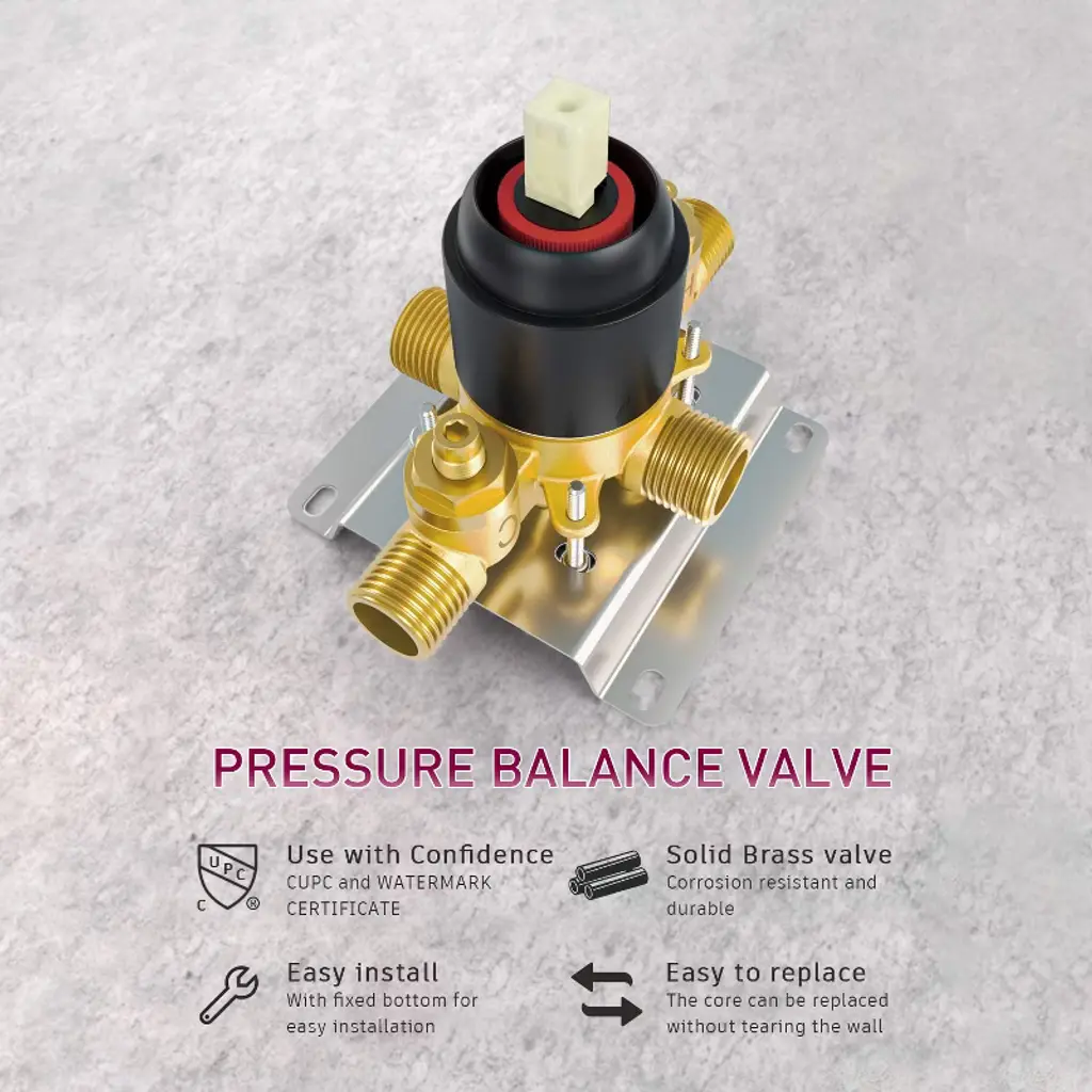 Adorn your bathroom with the luxurious PROOX Pressure Balance Tub and Shower System. The valve is Made of durable brass, this modern fixture includes a smooth single lever handle to control your water's temperature. Available with a rough-in valve, the PROOX complements a variety of design styles while remaining rust and corrosion-resistant. Choose your favorite finish to complete the look.