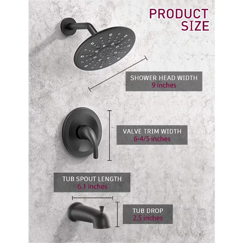 Proox Single-handle 1-spray High Pressure Tub And Shower Faucet With 9 In. Large Shower Head In Matte Black (Valve Included)