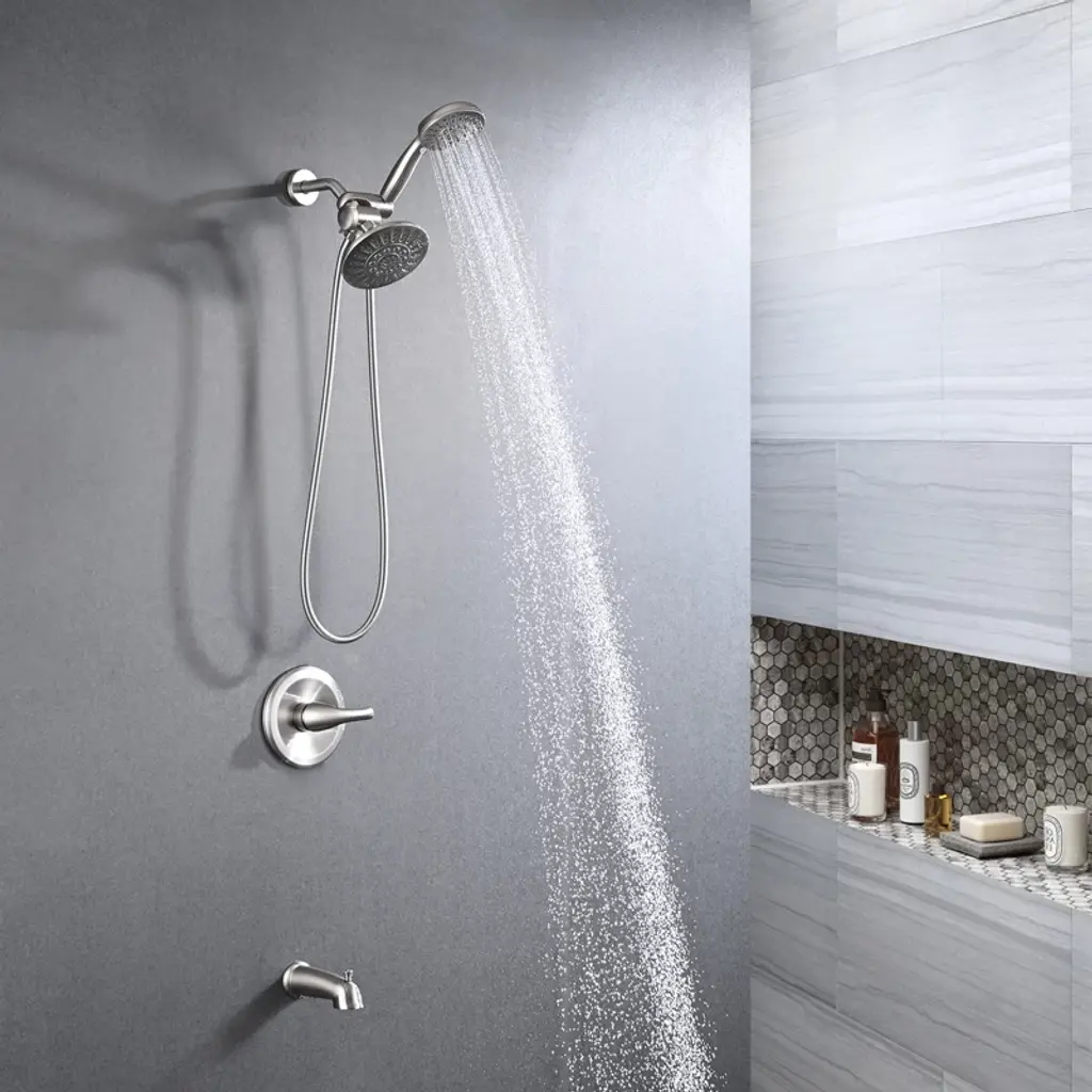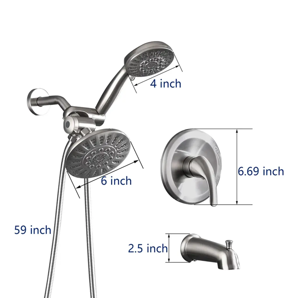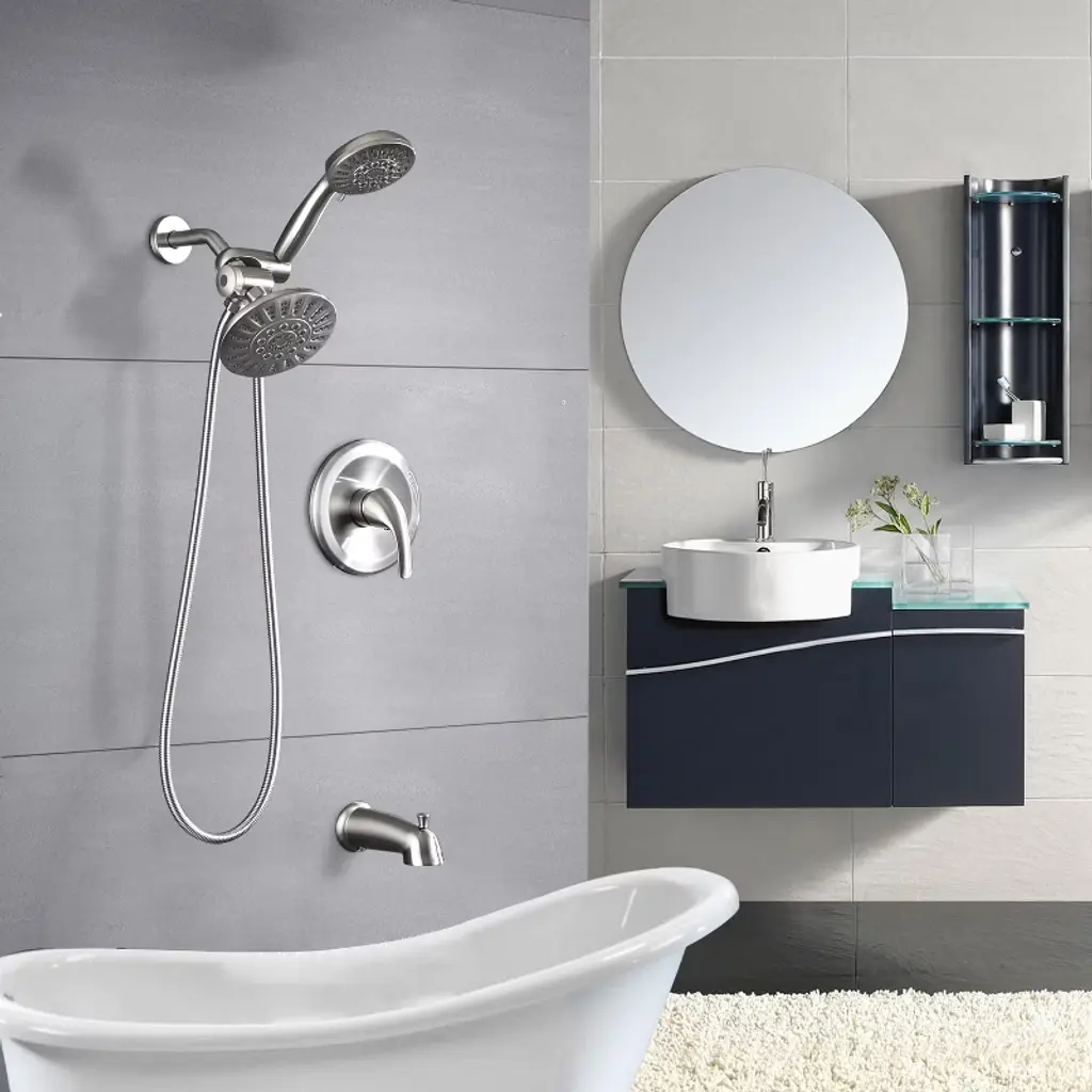 Proox Single Handle 30-spray Shower Faucet With Dual Shower Heads And Tub Spout In Brushed Nickel (Valve Included)