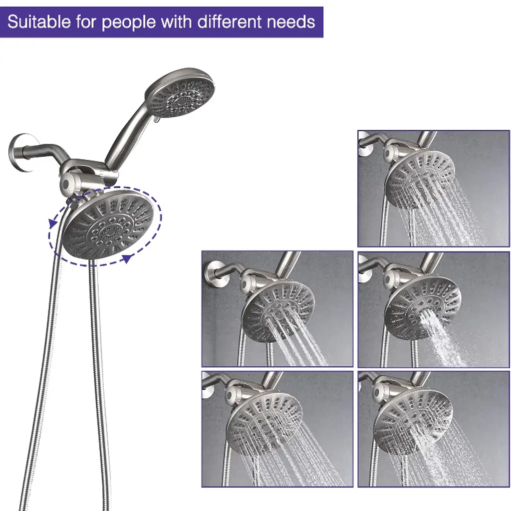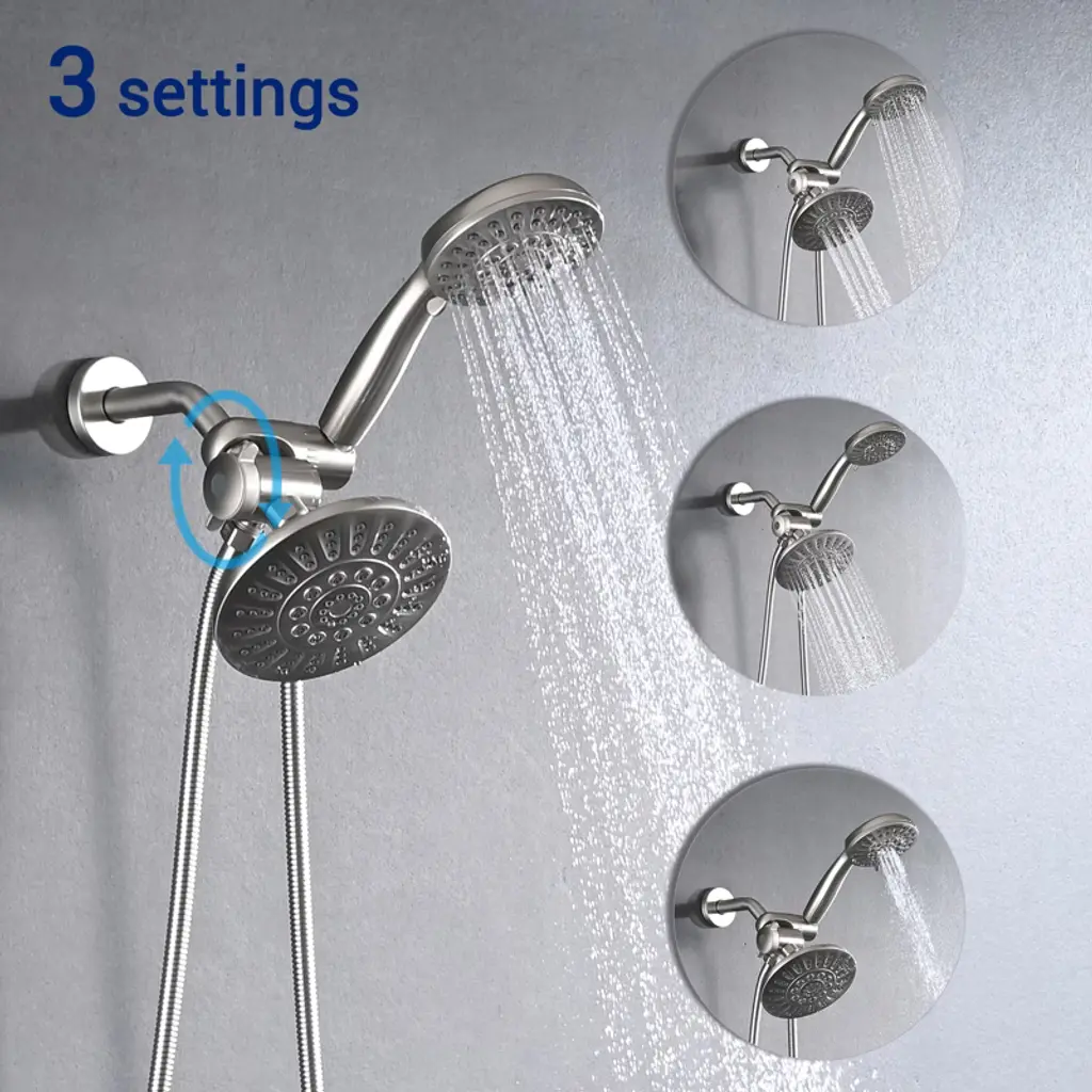 The PROOX 2 in 1 Shower Faucet is made of premium ABS material, the valve is durable brass. This stylish product features a 5 functions shower head and 6 functions hand shower. The shower combo set comes with 3-way diverter valve for maximum coverage using the rain shower and hand shower alone or together. Enjoy doubly happy.