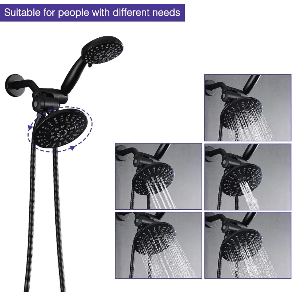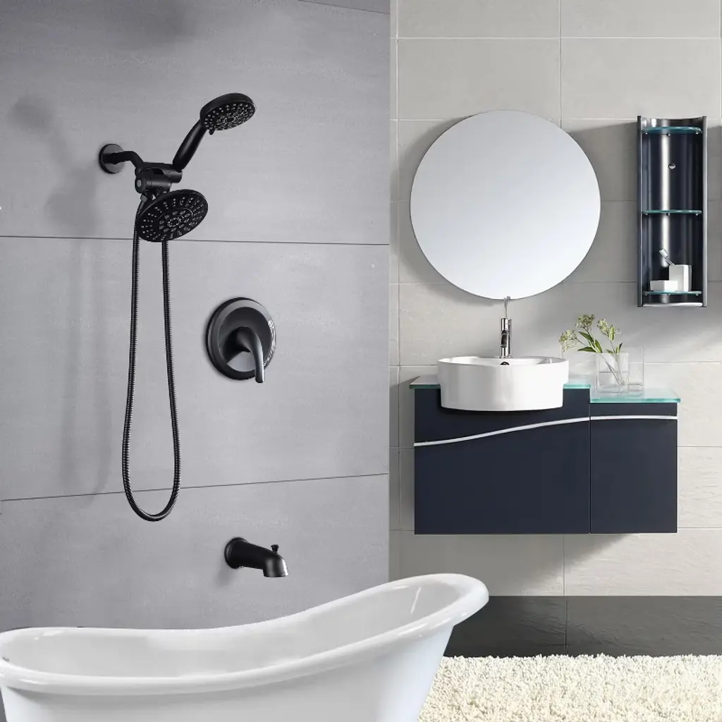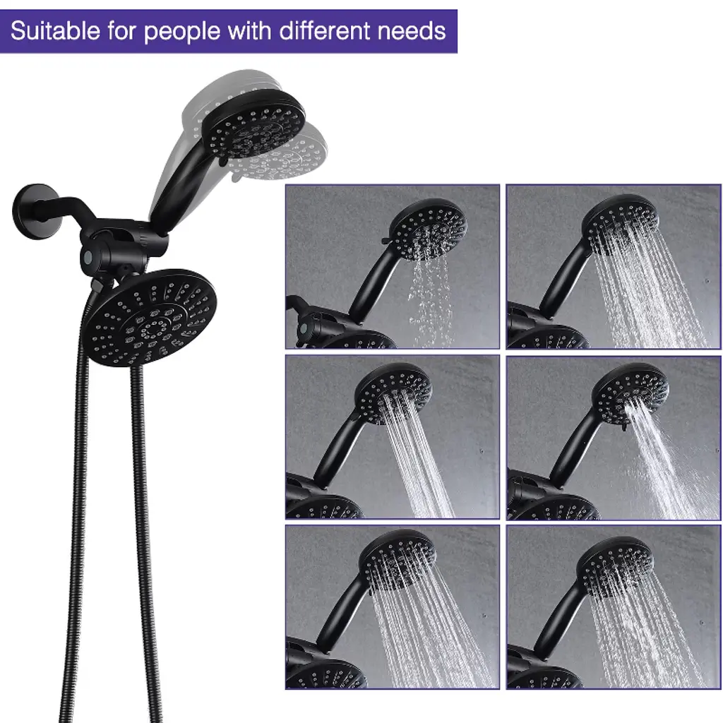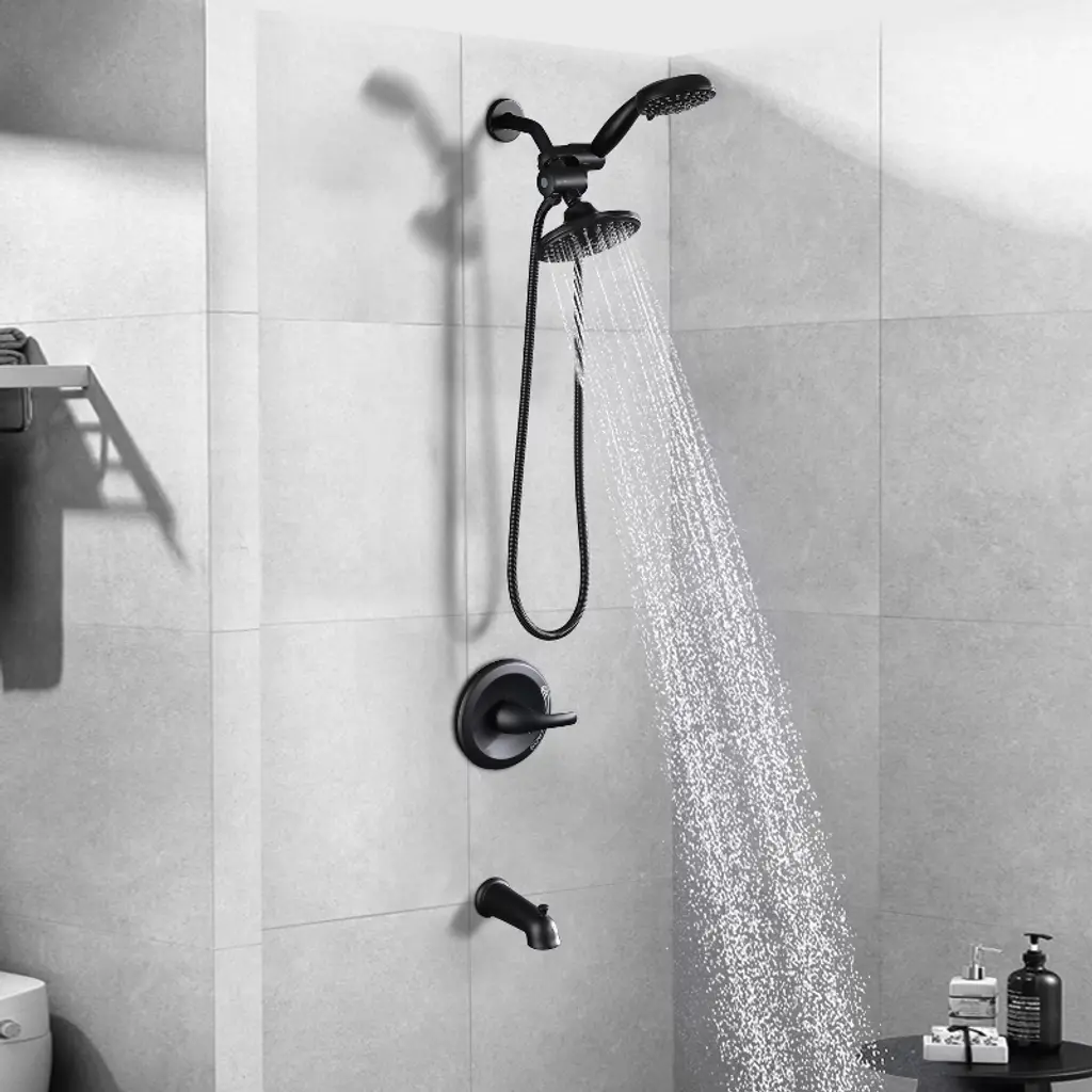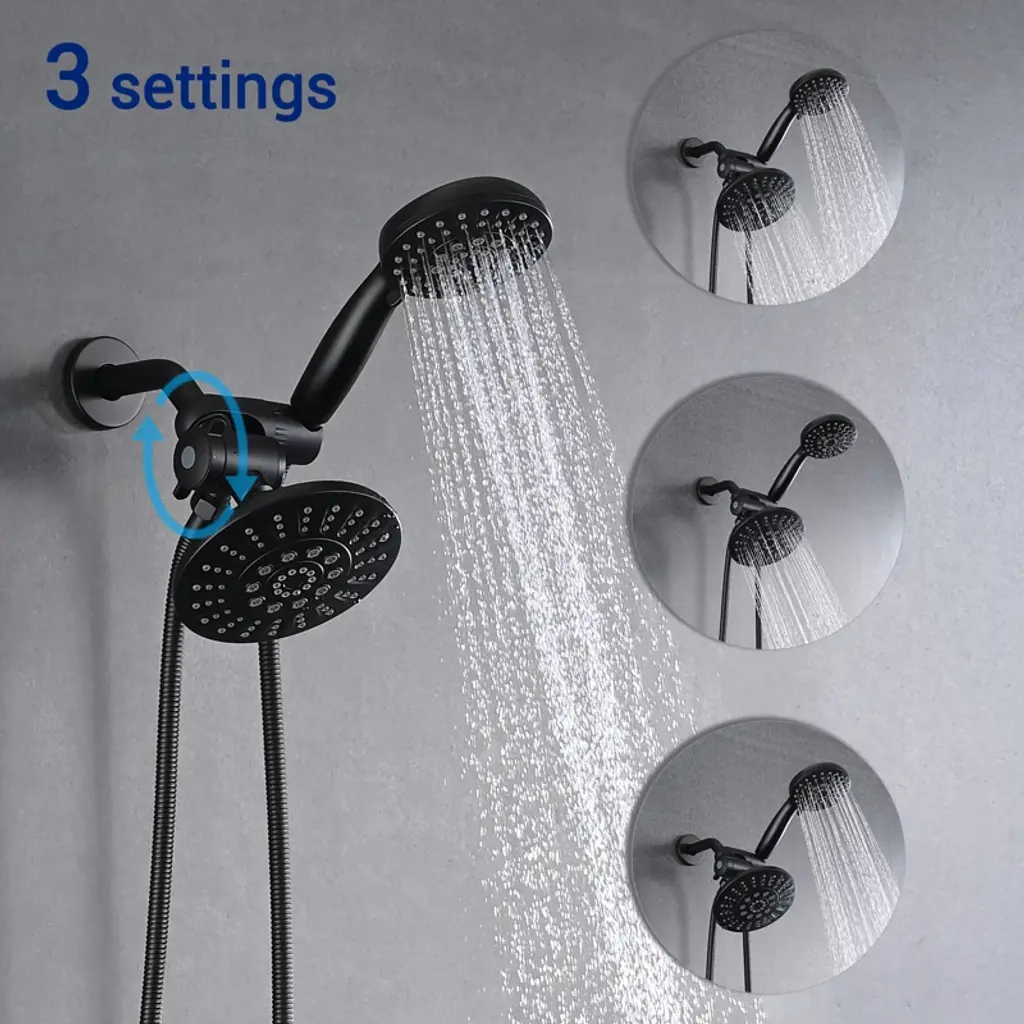 The PROOX 2 in 1 Shower Faucet is made of premium ABS material, the valve is durable brass. This stylish product features a 5 functions shower head and 6 functions hand shower. The shower combo set comes with 3-way diverter valve for maximum coverage using the rain shower and hand shower alone or together. Enjoy doubly happy.