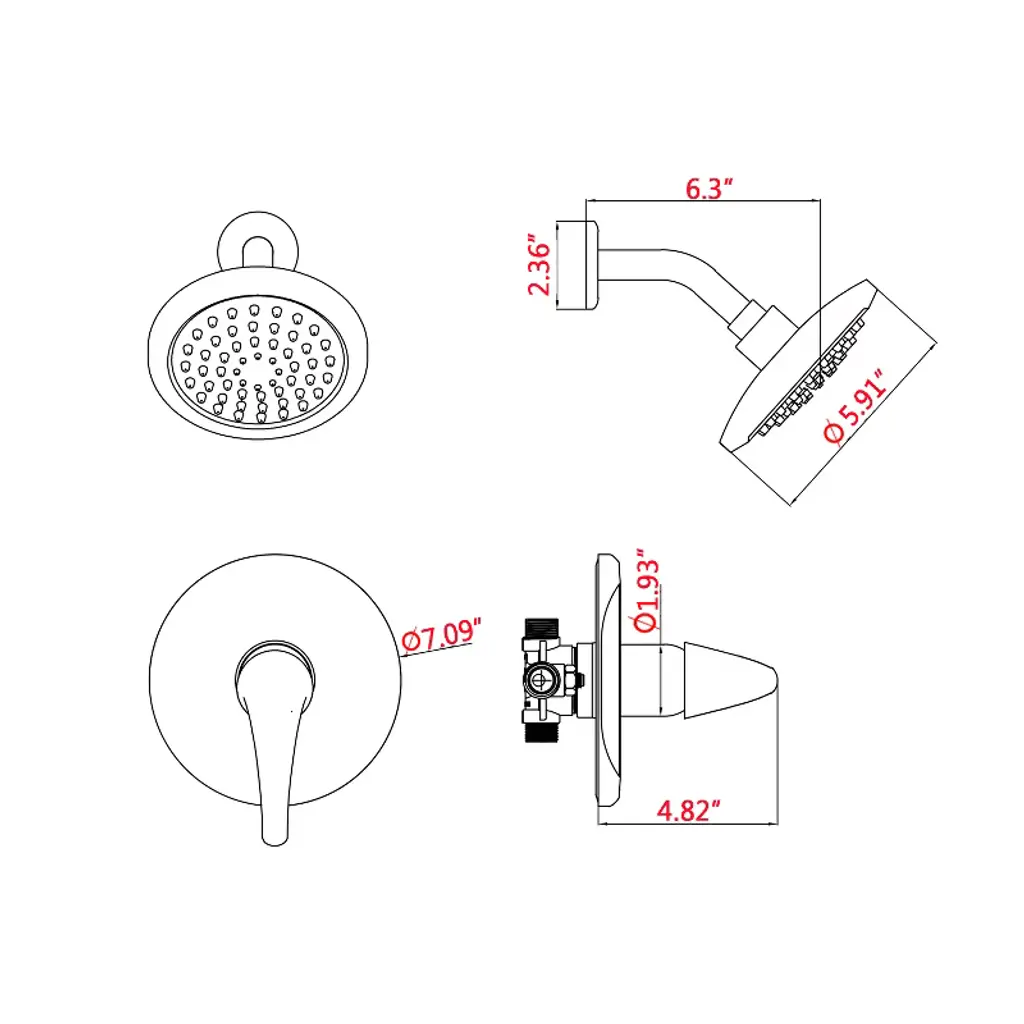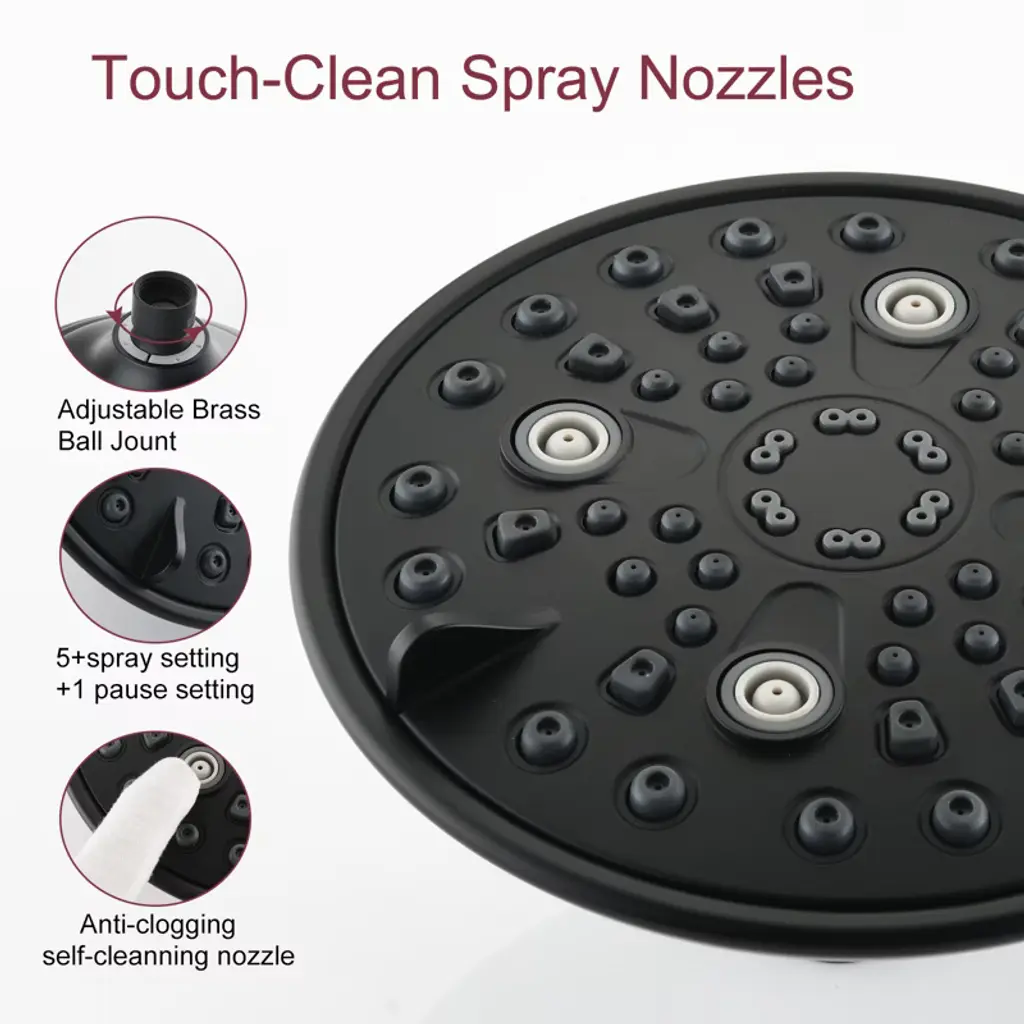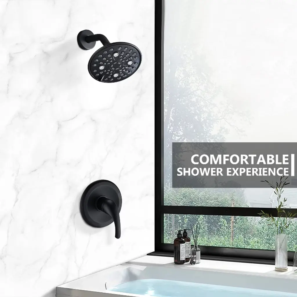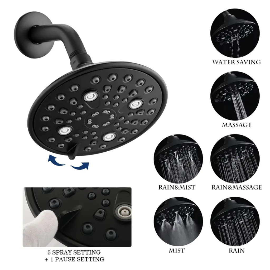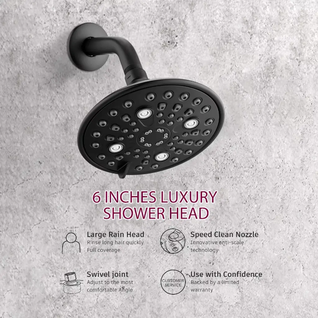 Proox Single-handle 6-spray Round High Pressure Shower Faucet With 5.91 In. Large Shower Head In Matte Black (Valve Included)