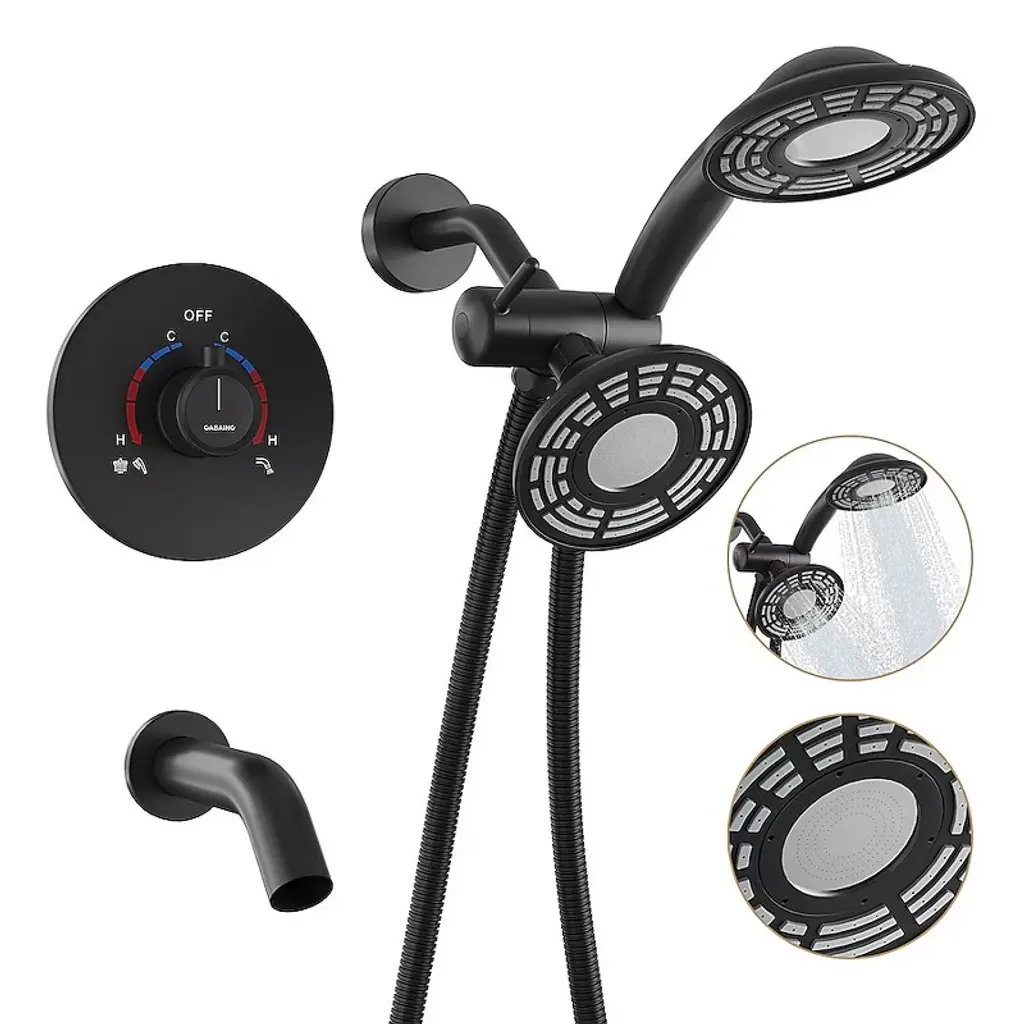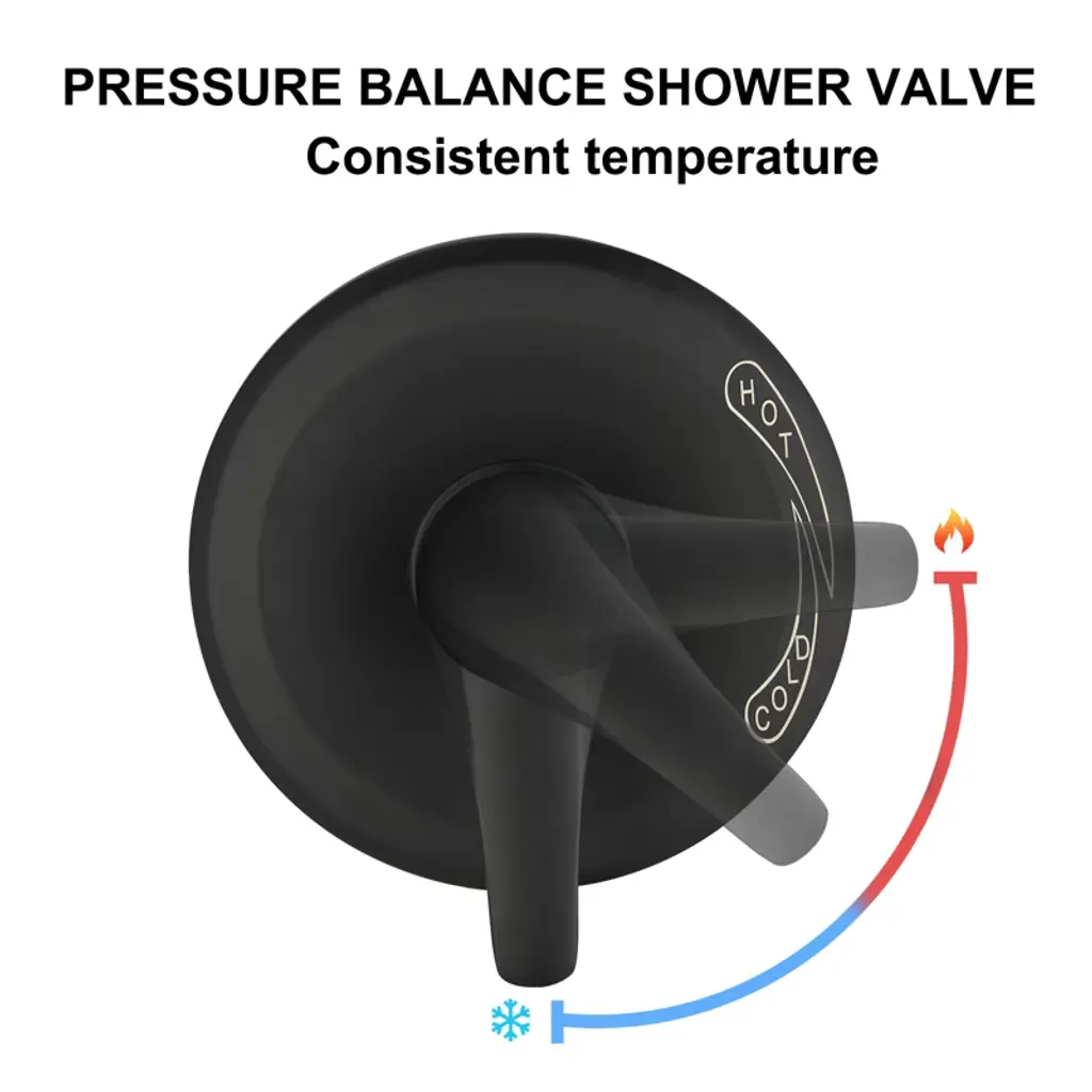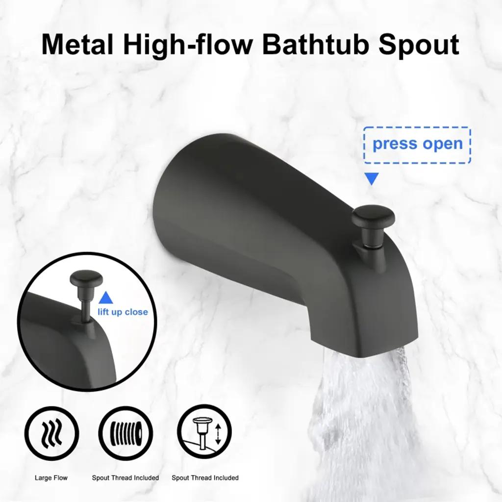 For manual water change, you can switch the water mode (top nozzle and manual shower head) by manually rotating the shower surface. The soft silicone nozzle is easy to clean and can remove calcification with your fingers. Rotate the top nozzle to the hand-held nozzle and easily adjust the shower mode through the rotary switch (rainfall or hand-held shower), which brings you a unique rainfall experience. Comes with a tub spout with dieter to give your convenience when using the bathtub. When the supply pressure of cold water or hot water changes suddenly, the pressure balance valve of our shower system can automatically stop water outlet to avoid scalding accidents. Drip free performance the valve core can withstand many strict drip free operation tests. The smooth single lever can easily control the water temperature and flow.