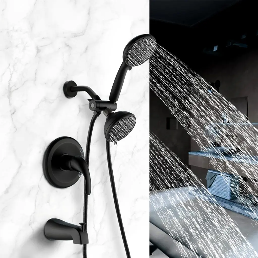 Proox Single Handle 7-spray High Pressure Tub And Shower Faucet With Handheld Shower Head In Matte Black (Valve Included)