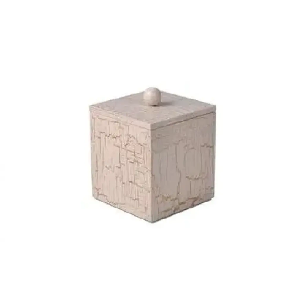 Prosecco Oatmeal/ecru/gold Enamel Tall Square Container (3.75"w X 3.75"l X 5"h)