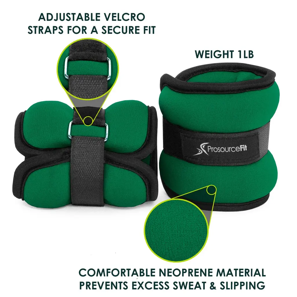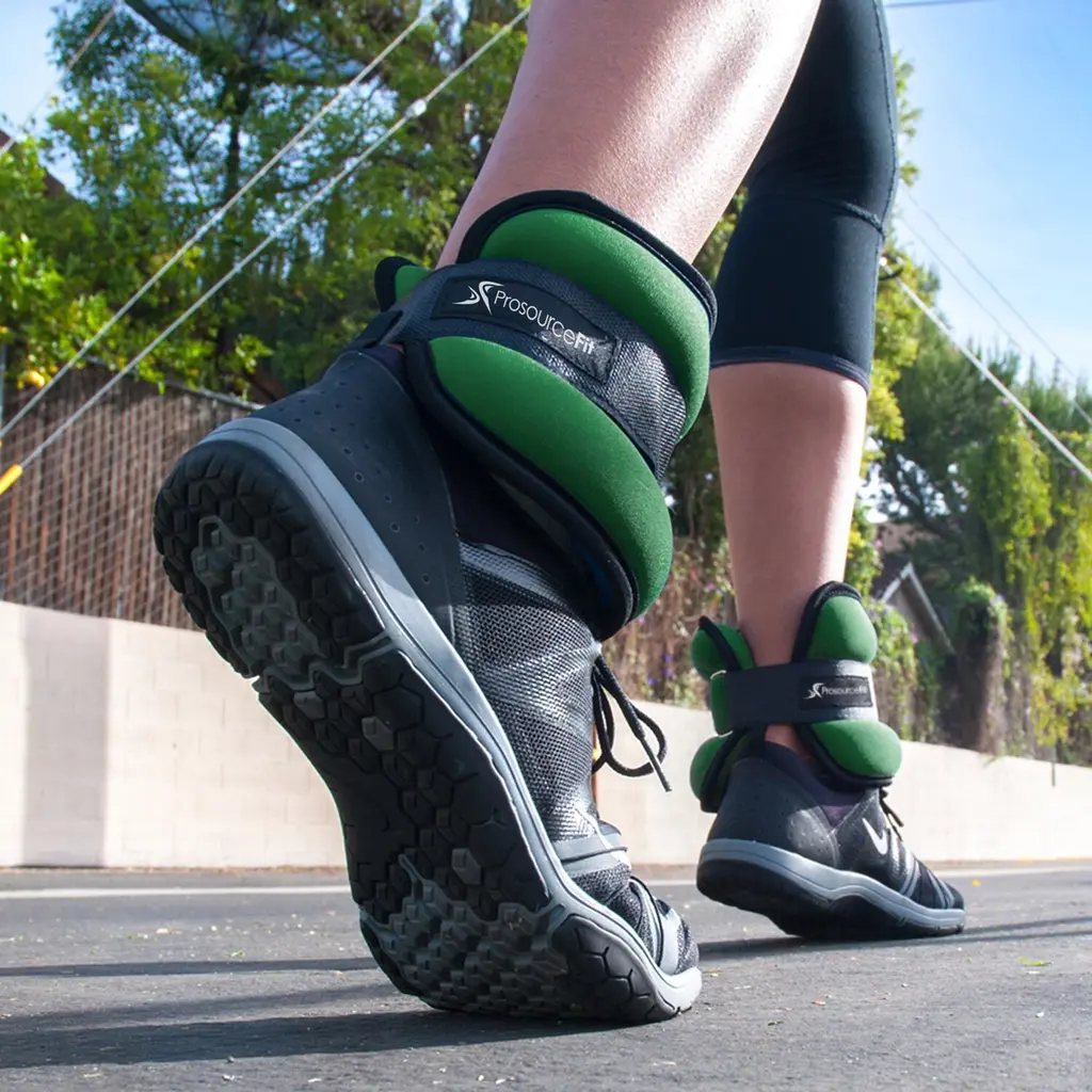 Increase the intensity of your workouts and see faster results by adding ProsourceFit Ankle Weights to your cardio, plyometric, walking, dance, or weightlifting routine. Ranging from one to five pounds, these comfort-fit weights wrap gently around your ankles to safely add more resistance to tone and sculpt your lower body. Turn basic exercises like walking, jumping, lunging, aerobics, or leg lifts into muscle-building and calorie-burning movements. Whether trying to lose weight, tone up or rehabilitate after injuries, ankle weights provide an additional challenge and allow you to slowly and safely increase the weight as you progress. Six different weight options are color-coded so you can have a few on hand to change depending on the intensity level you need. Adjustable Velcro straps make it easy to take them on and off, and a metal hook and loop closure allow you to tighten them securely to prevent slipping while you work out. Neoprene material on the 1 to 3-pound weights is soft on your skin for comfortable workouts. Please note that our 5 pounds weights are designed slightly differently with durable Oxford nylon to withstand the extra weight of the filling and prevent breakage. The filling cannot be added or removed the weight is exactly as listed. ProsourceFit Ankle Weights come with a limited lifetime warranty for manufacturer defects so you can feel confident about your purchase.