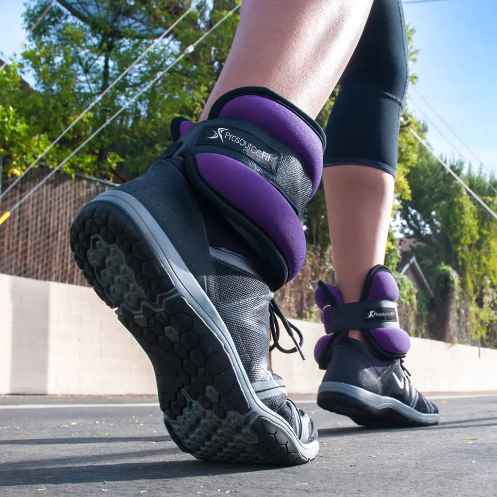 Increase the intensity of your workouts and see faster results by adding ProsourceFit Ankle Weights to your cardio, plyometric, walking, dance, or weightlifting routine. Ranging from one to five pounds, these comfort-fit weights wrap gently around your ankles to safely add more resistance to tone and sculpt your lower body. Turn basic exercises like walking, jumping, lunging, aerobics, or leg lifts into muscle-building and calorie-burning movements. Whether trying to lose weight, tone up or rehabilitate after injuries, ankle weights provide an additional challenge and allow you to slowly and safely increase the weight as you progress. Six different weight options are color-coded so you can have a few on hand to change depending on the intensity level you need. Adjustable Velcro straps make it easy to take them on and off, and a metal hook and loop closure allow you to tighten them securely to prevent slipping while you work out. Neoprene material on the 1 to 3-pound weights is soft on your skin for comfortable workouts. Please note that our 5 pounds weights are designed slightly differently with durable Oxford nylon to withstand the extra weight of the filling and prevent breakage. The filling cannot be added or removed the weight is exactly as listed. ProsourceFit Ankle Weights come with a limited lifetime warranty for manufacturer defects so you can feel confident about your purchase.