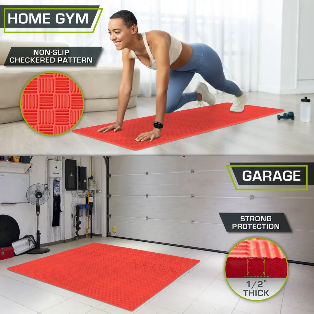 Prosourcefit Checkered Puzzle Exercise Mat, 24 Sq Ft - 6 Tiles - 1/2" - Red