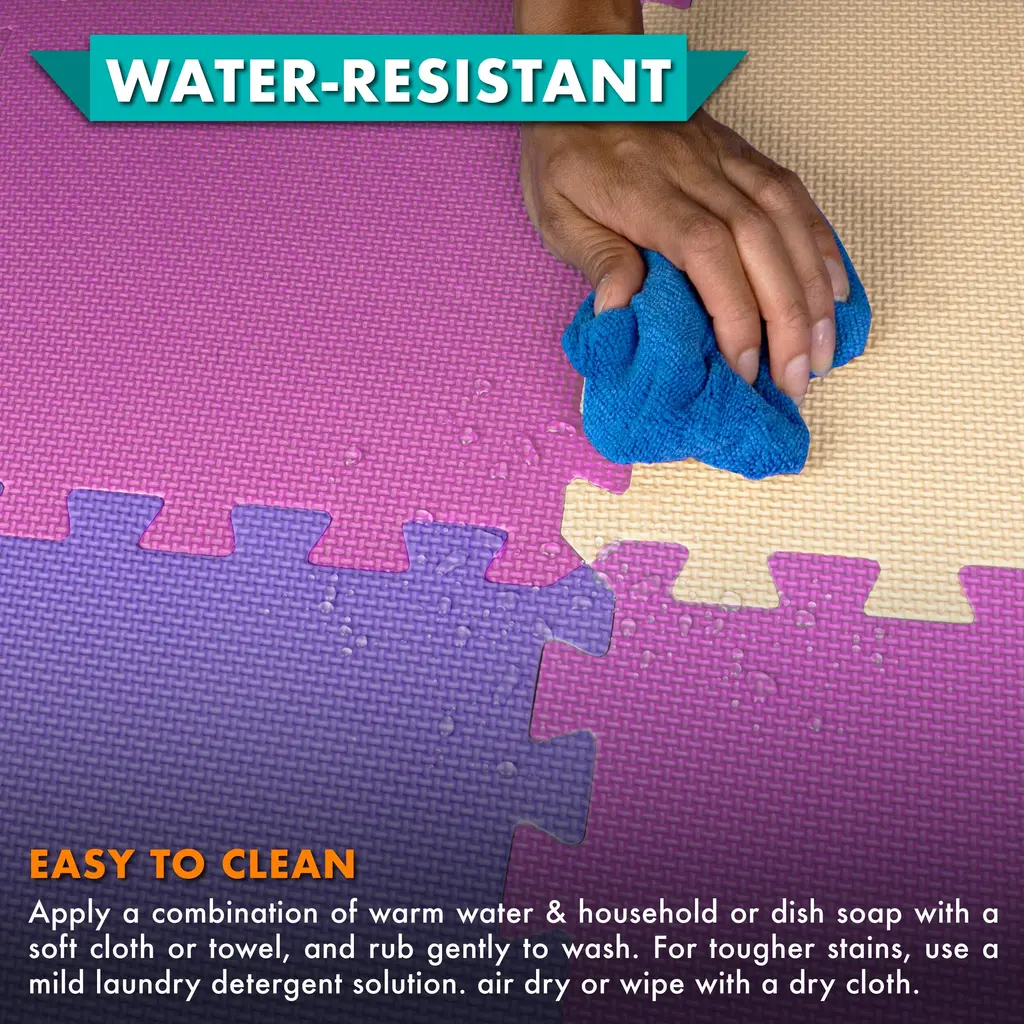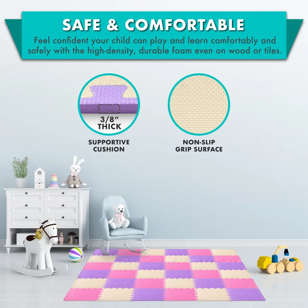 Prosourcefit Kids Solid Floor Play Mat 3/8-In - 36 Sq Ft - Pink/purple/beige