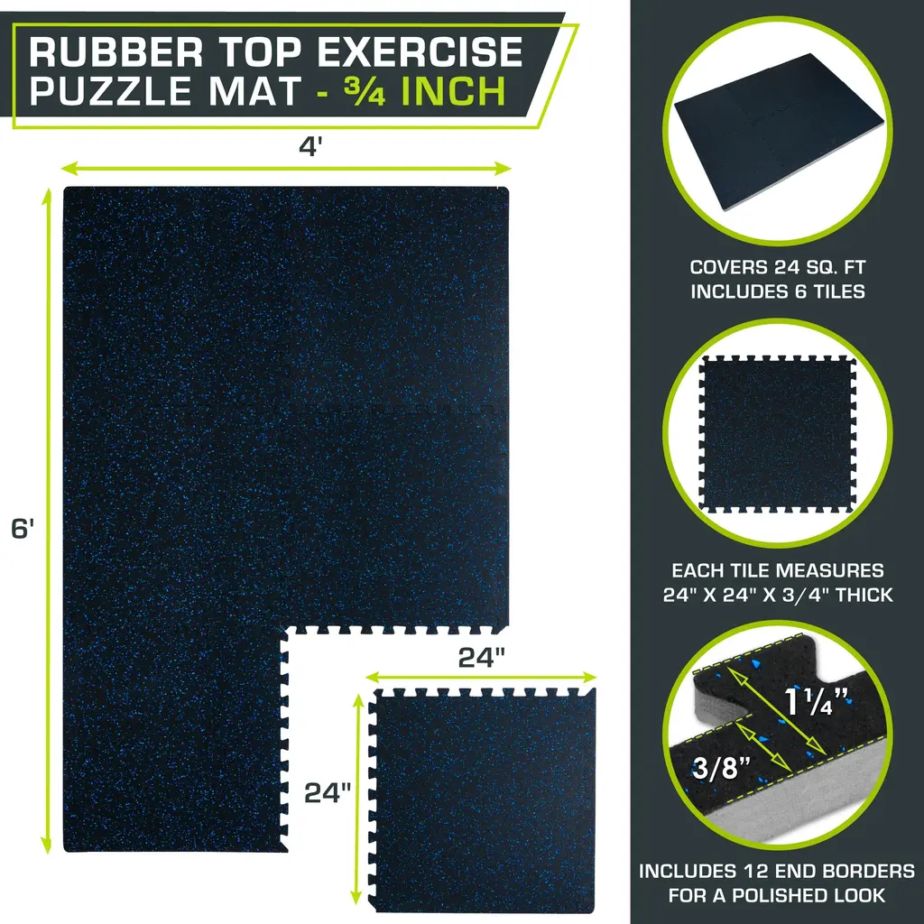Prosourcefit Rubber Top Exercise Puzzle Mat 3/4-In Tiles - 24 Sq Ft - Blue