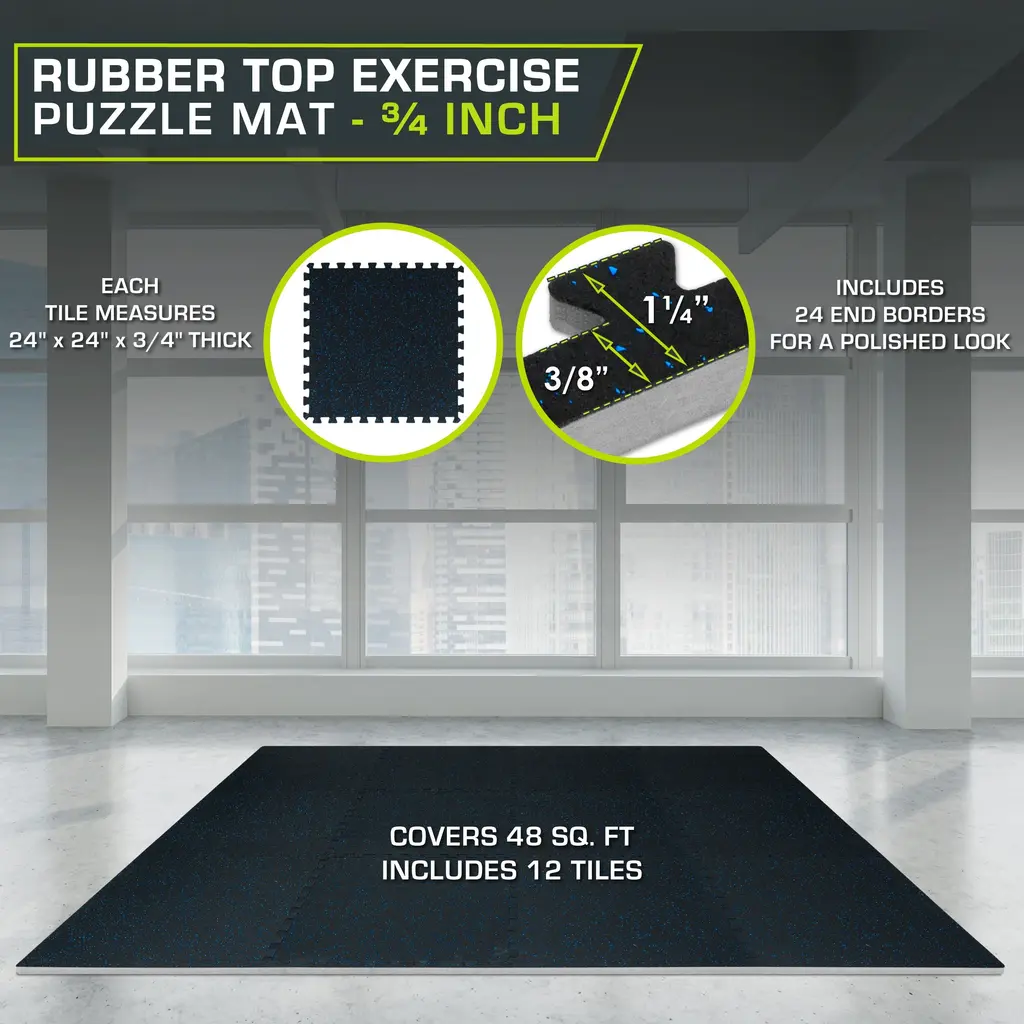 Prosourcefit Rubber Top Exercise Puzzle Mat 3/4-In Tiles - 48 Sq Ft - Blue
