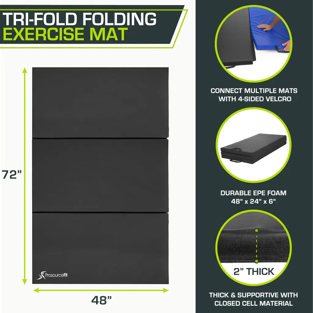 Prosourcefit Tri-Fold Folding Exercise Mat - Black