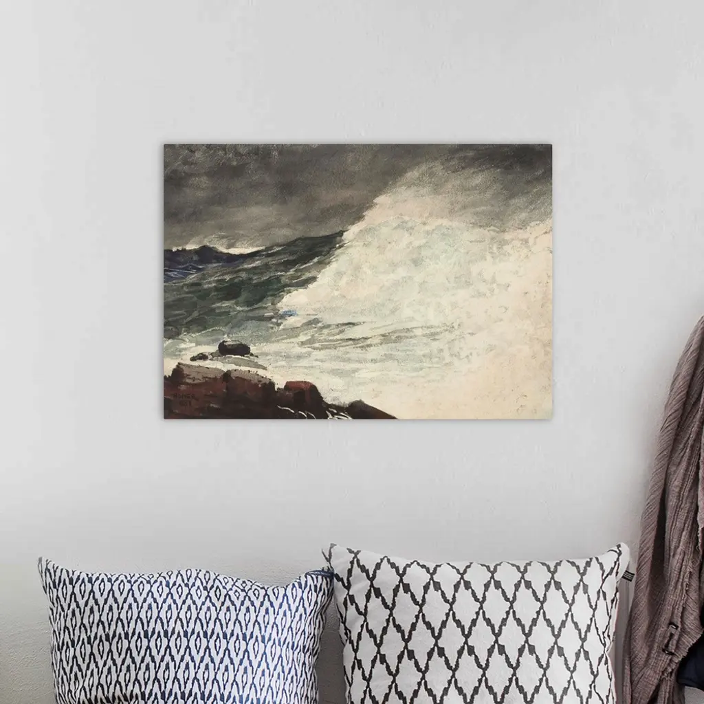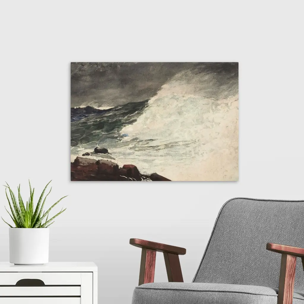 Prout's Neck, Breaking Wave, 1887, transparent watercolor, with touches of opaque watercolor, rewetting, blotting and scraping, over resist and traces of graphite, on medium weight, moderately textured, ivory wove paper, laid down on cream wove paper.