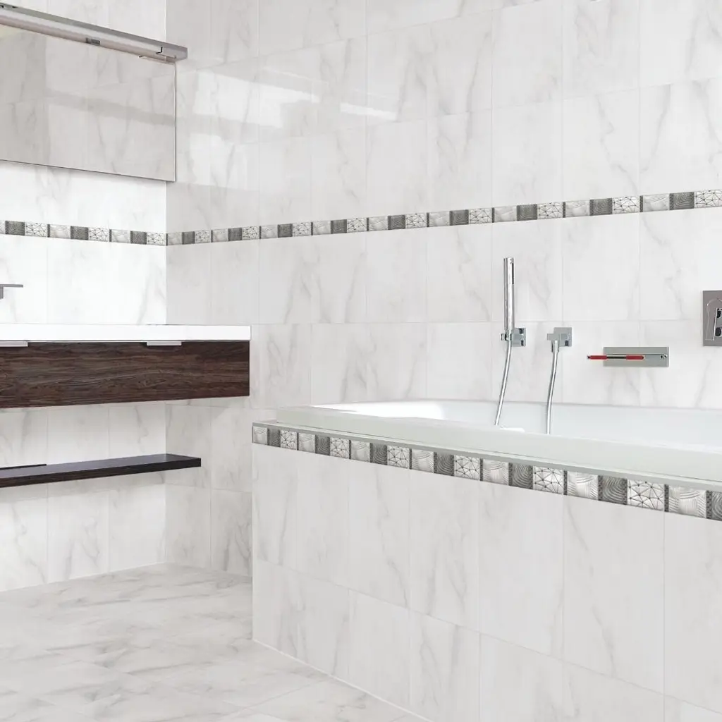 Transform any residential or commercial bathroom with The Tile Life's timeless Providence Ceramic Collection. This marble look tile is a perfect complement to any contemporary or classic aesthetic. The elegant, marble rectangular tile series blends the look of natural stone with its ceramic makeup, establishing durability and minimal maintenance. Our Providence collection incorporates a distinctive personal signature with a wide variety of designs. FEATURES: DIMENSIONS:
