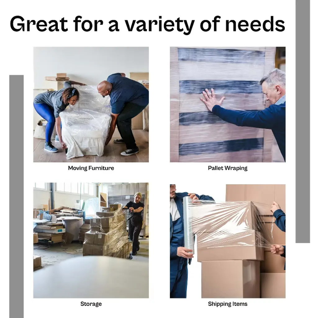 Stretch wrap is the ideal product to use when bundling and moving. Not only can it be used to protect items from minor damage when moving, it can also be used for both securing large shipments and protecting warehouse stock. The self-adhering, high strength wrap securely clings to itself with no extra need for tape or heat sealing. Resistant to punctures and tears, stretch wrap will keep you items safe and sound until they are unpacked. At that time, the wrap can easily be removed with no residue or damage left behind.