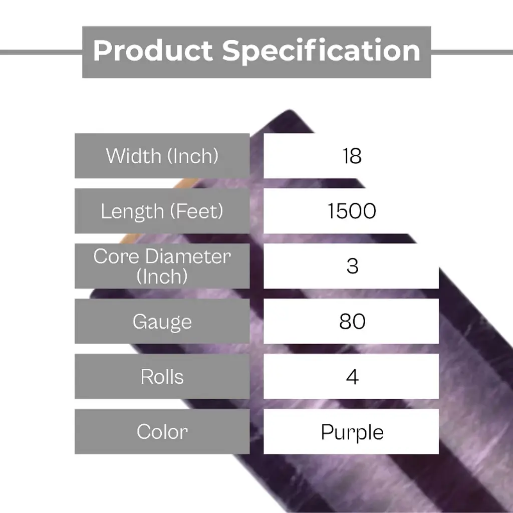 Psbm 4 Rolls 18"x1500' (80 Gauge) Bundling Stretch Film Hand Shrink Wrap, Dark Purple