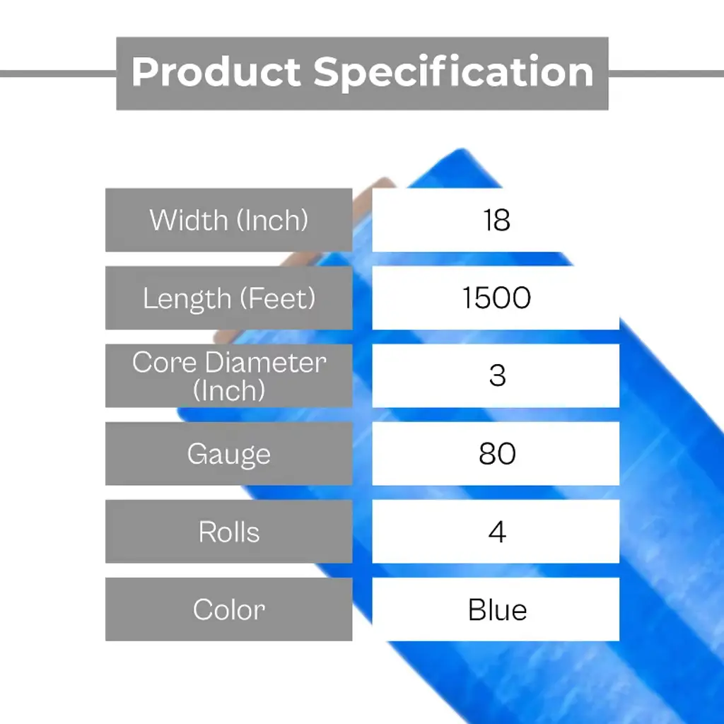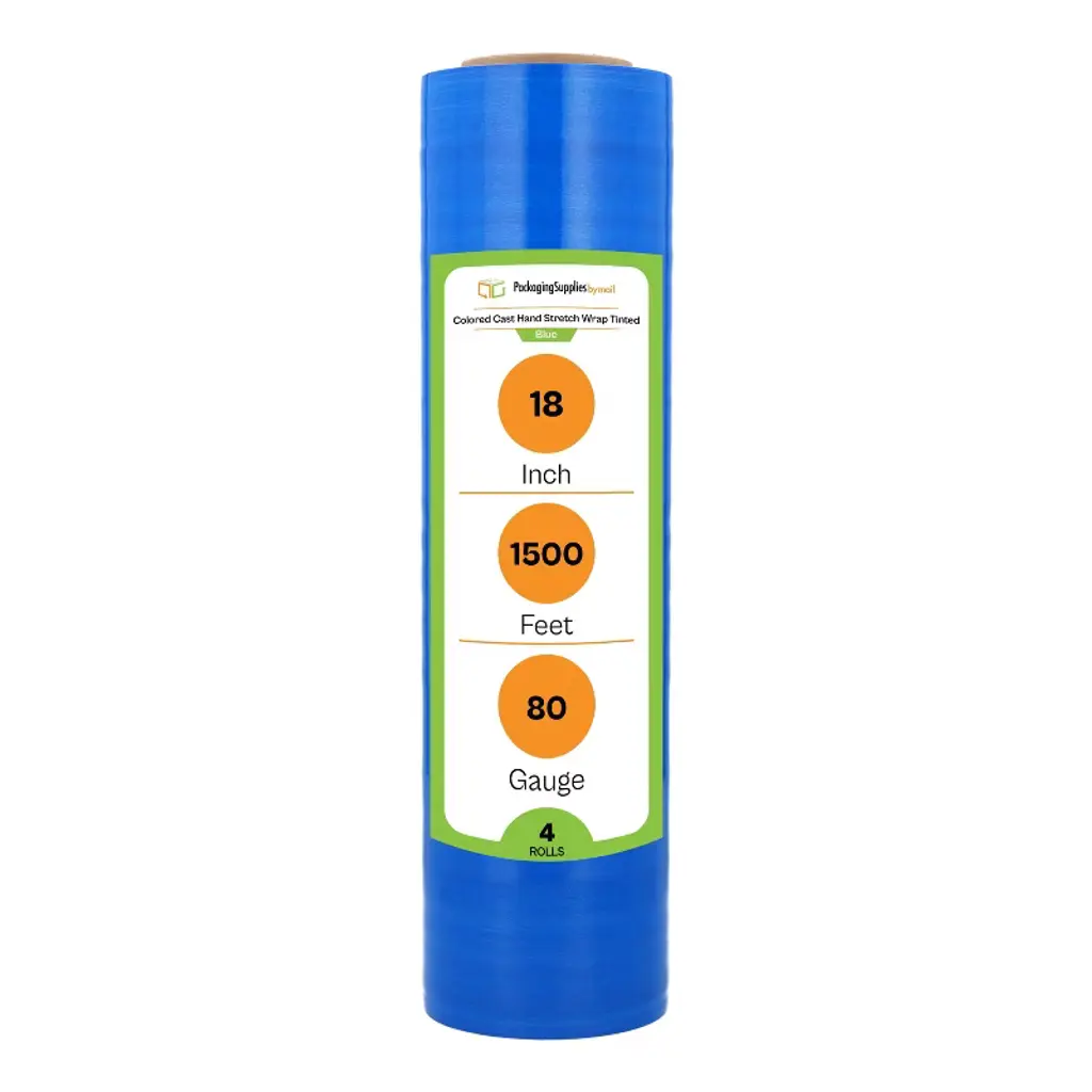 Psbm 4 Rolls 18"x1500' Cast Packing Stretch Film Shrink Hand Wrap (80 Ga) Tint Blue