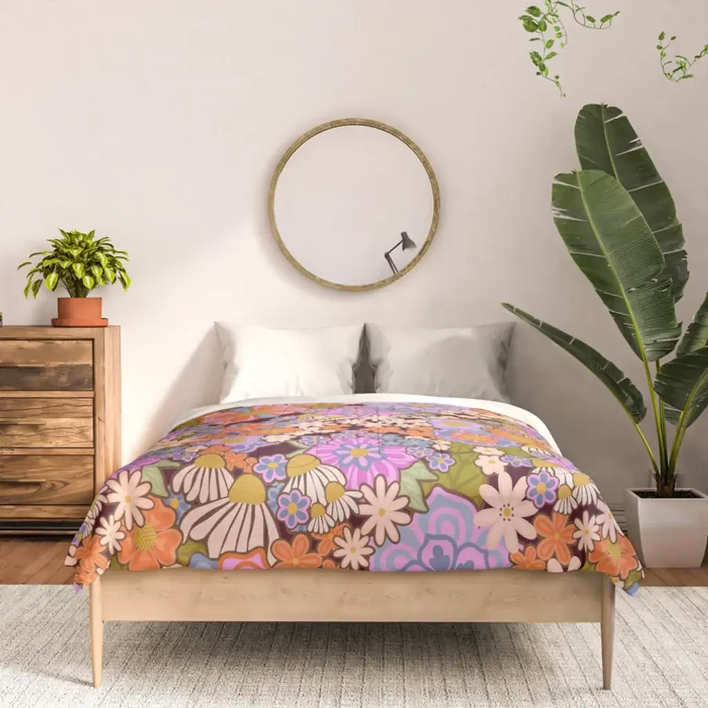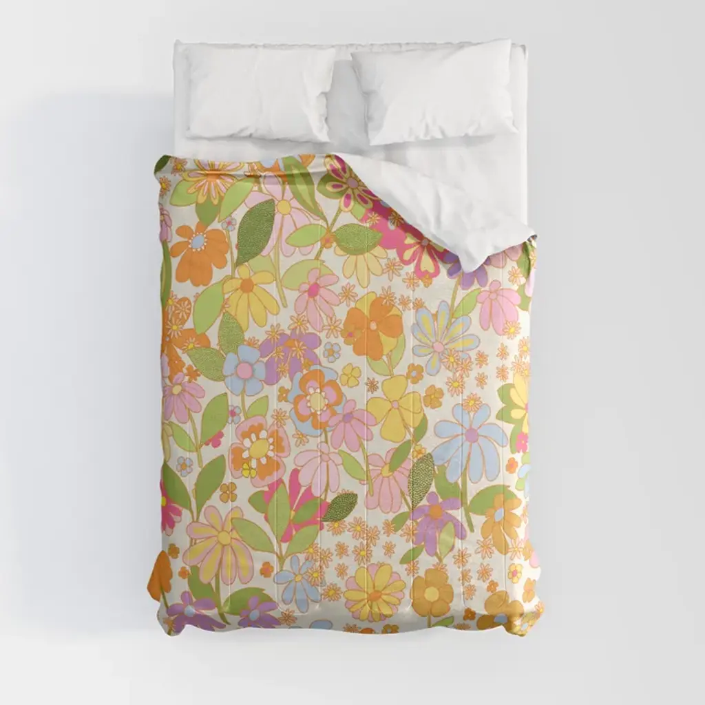 Psychedelic 70s Floral Pattern Comforter