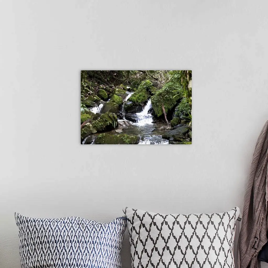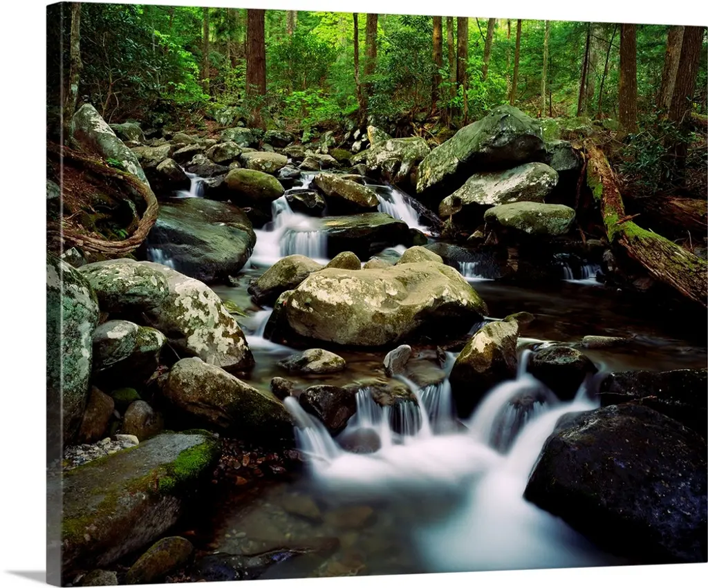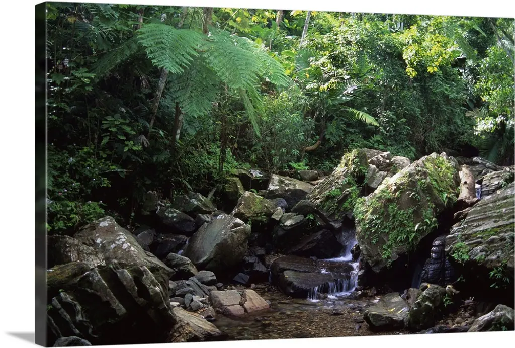 Puerto Rico, River Water Cascading Over Rocks As It Passes Though A Tropical Setting