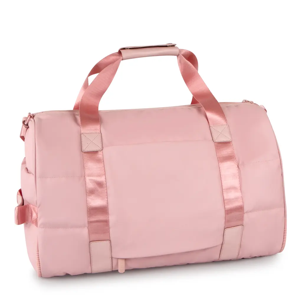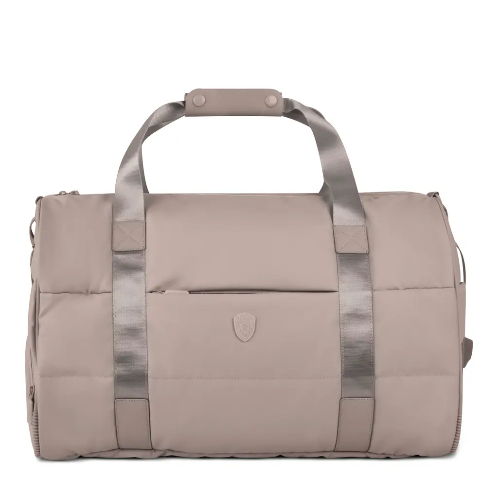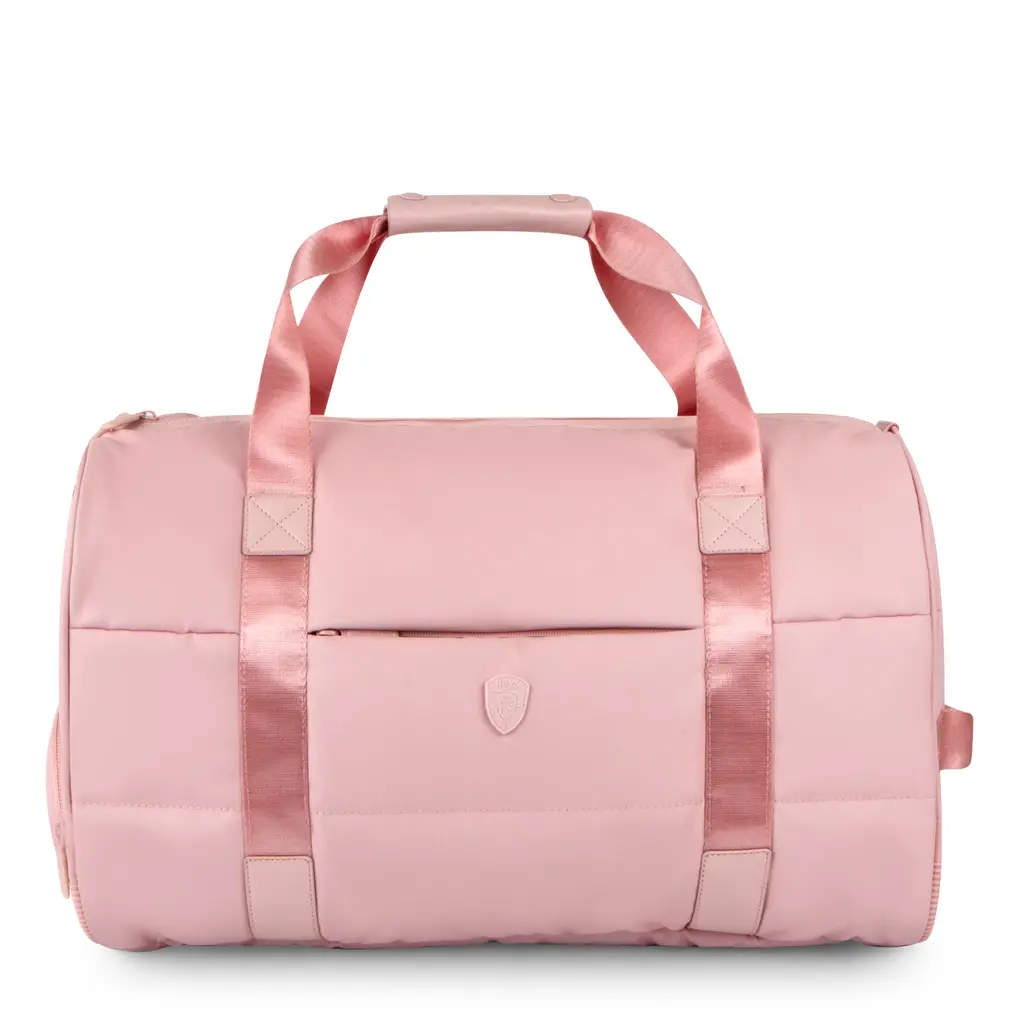 Your must-have travel essential for gym sessions, weekend getaways, and effortless carry-on travel convenience, the Heys Puffer duffel is designed for those who crave both style and functionality. Crafted from luxuriously soft, lightweight, water-resistant fabric, this bag seamlessly blends premium quality with smart, travel-ready design. Available in stunning shades, this duffel isn't just practical: it's a bold statement. Its spacious interior, dedicated shoe compartment, dual exterior water bottle pockets, and camouflaged front zipper pocket ensure your essentials stay organized, whether you're hitting the gym or heading out on an adventure. Additional features include dual zip closures, durable handles with matching hardware, and three convenient carrying options—side, top, or shoulder—with a detachable/adjustable nylon strap. The slide-through trolley pocket makes it easy to pair with your luggage for seamless airport navigation.