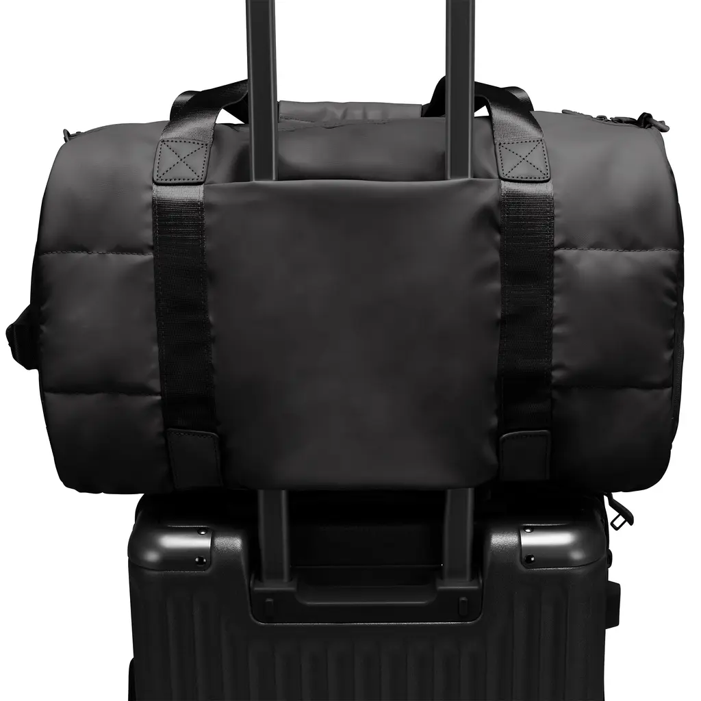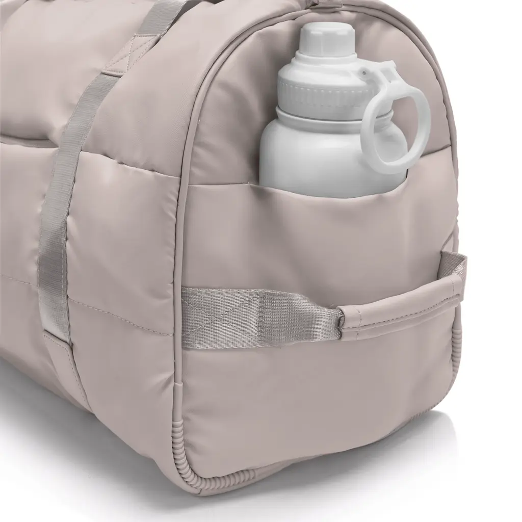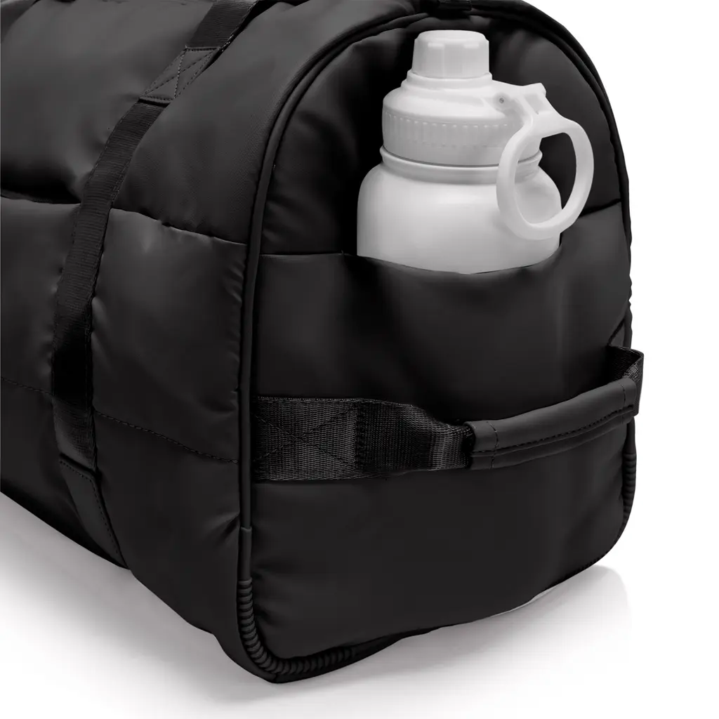 Your must-have travel essential for gym sessions, weekend getaways, and effortless carry-on travel convenience, the Heys Puffer duffel is designed for those who crave both style and functionality. Crafted from luxuriously soft, lightweight, water-resistant fabric, this bag seamlessly blends premium quality with smart, travel-ready design. Available in stunning shades, this duffel isn't just practical: it's a bold statement. Its spacious interior, dedicated shoe compartment, dual exterior water bottle pockets, and camouflaged front zipper pocket ensure your essentials stay organized, whether you're hitting the gym or heading out on an adventure. Additional features include dual zip closures, durable handles with matching hardware, and three convenient carrying options—side, top, or shoulder—with a detachable/adjustable nylon strap. The slide-through trolley pocket makes it easy to pair with your luggage for seamless airport navigation.