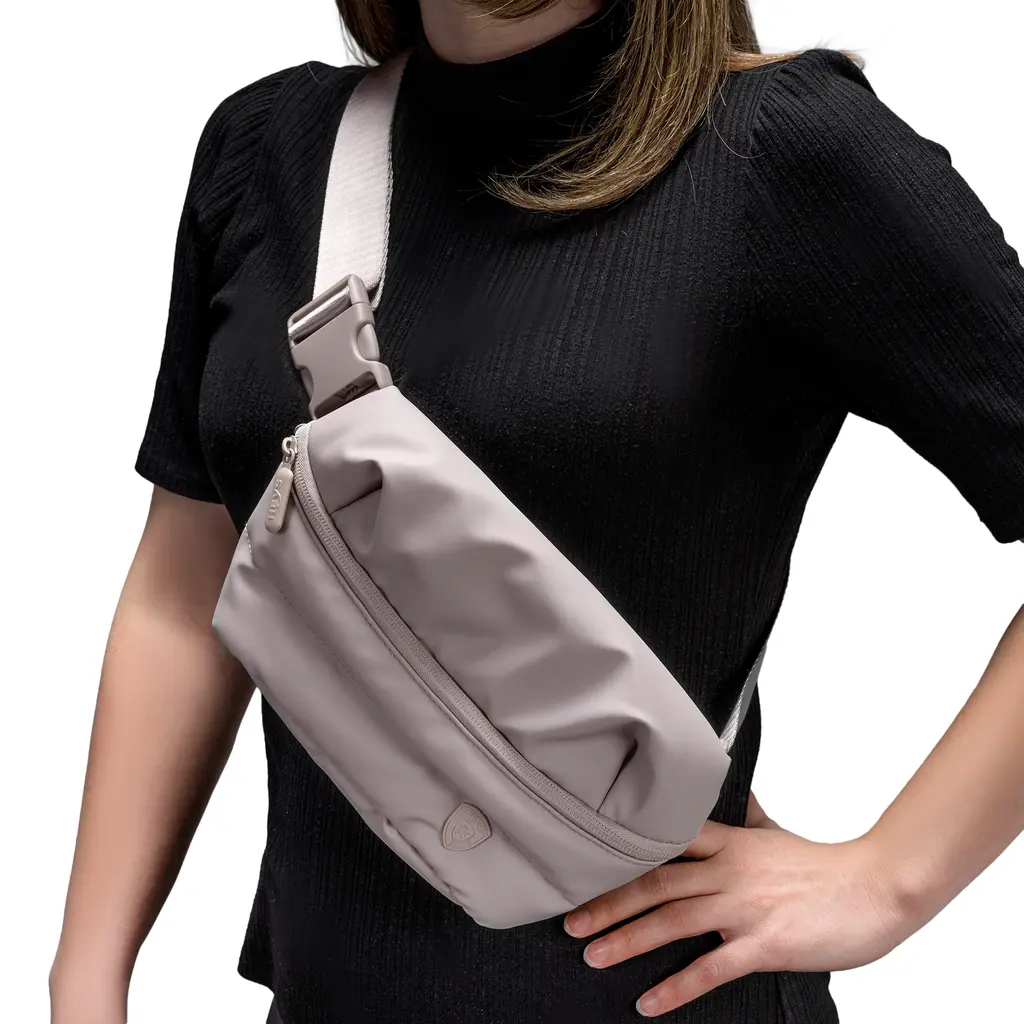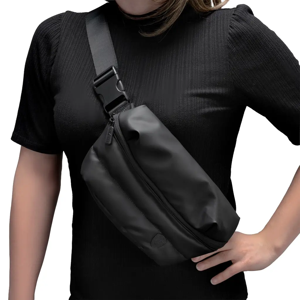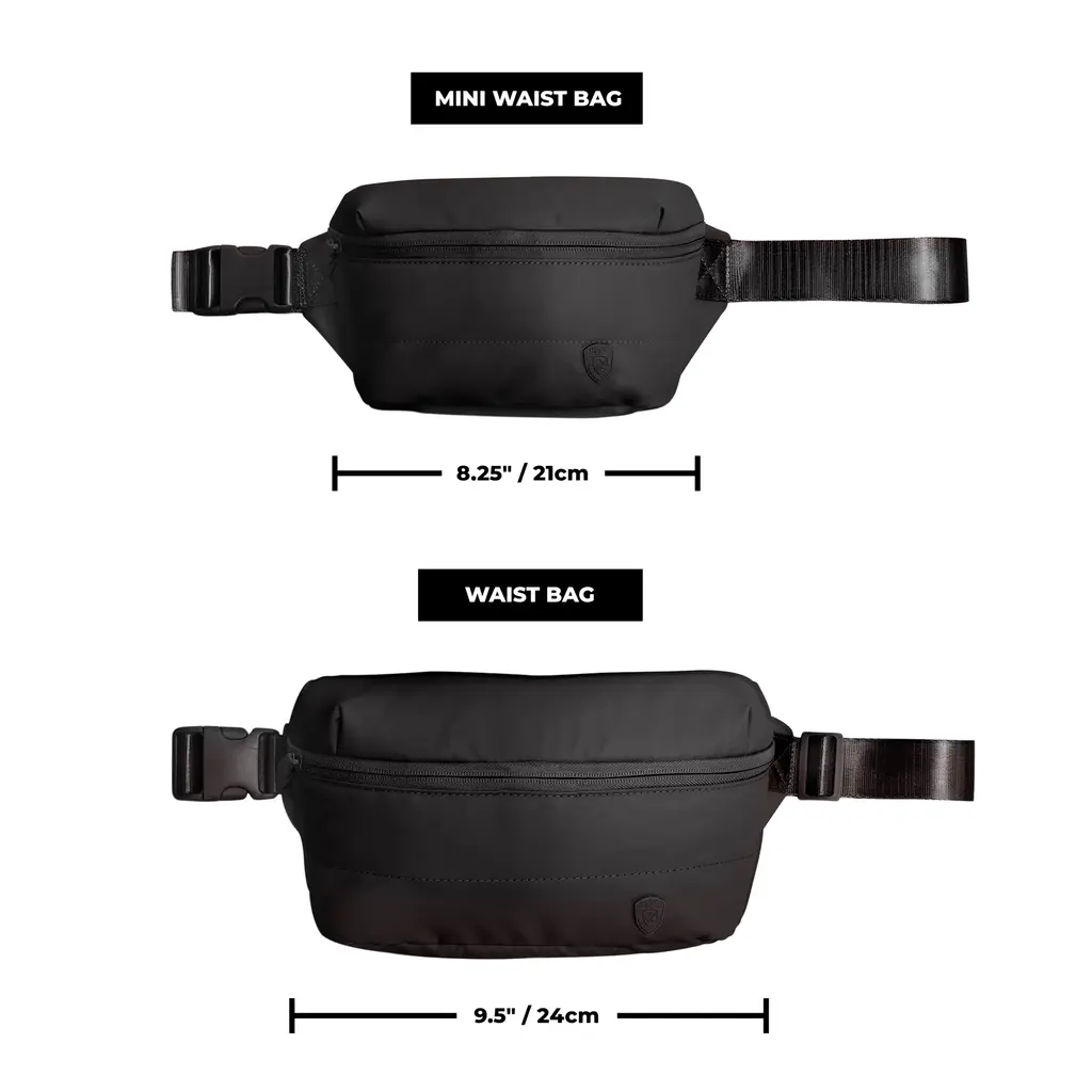 Compact, stylish, and effortlessly versatile, the Heys Puffer mini waist bag is the perfect grab-and-go accessory for those who prefer a lighter, more compact option compared to the larger Heys Puffer waist bag. Whether worn as a waist bag or a crossbody, its sleek design keeps your essentials secure while elevating your everyday look. Crafted from luxuriously soft, lightweight fabric, it seamlessly blends premium quality with a smart, travel-ready design. Available in stunning shades, this bag is the ideal hands-free companion. Its spacious yet compact interior, zippered main compartment, secure interior pocket, and hidden back zippered pocket offer quick access to your phone, cash, keys, or other must-haves while keeping everything organized. Additional features include dual zip closures, an adjustable buckled nylon strap for customized comfort, and color-matching hardware for a polished, modern look. Whether you're running errands, heading to a concert, or just traveling light, the Heys Puffer mini waist bag is the perfect blend of fashion and function.