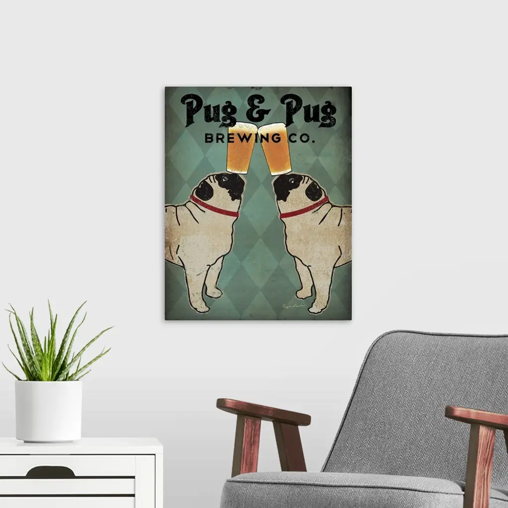 Pug and Pug Brewing wall art for home and office decor. Discover canvas art prints, photos, mural, big canvas art and framed wall art in GreatBigCanvas.com's varied collections.