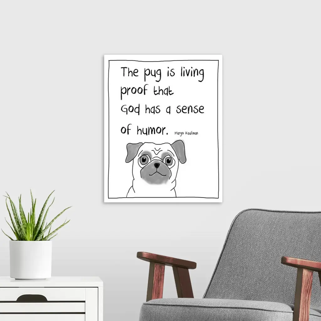 Cute funny dog art about life and pugs.