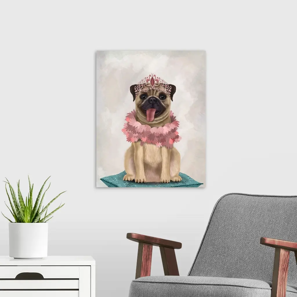 Pug Princess On Cushion wall art for home and office decor. Discover canvas art prints, photos, mural, big canvas art and framed wall art in GreatBigCanvas.com's varied collections.