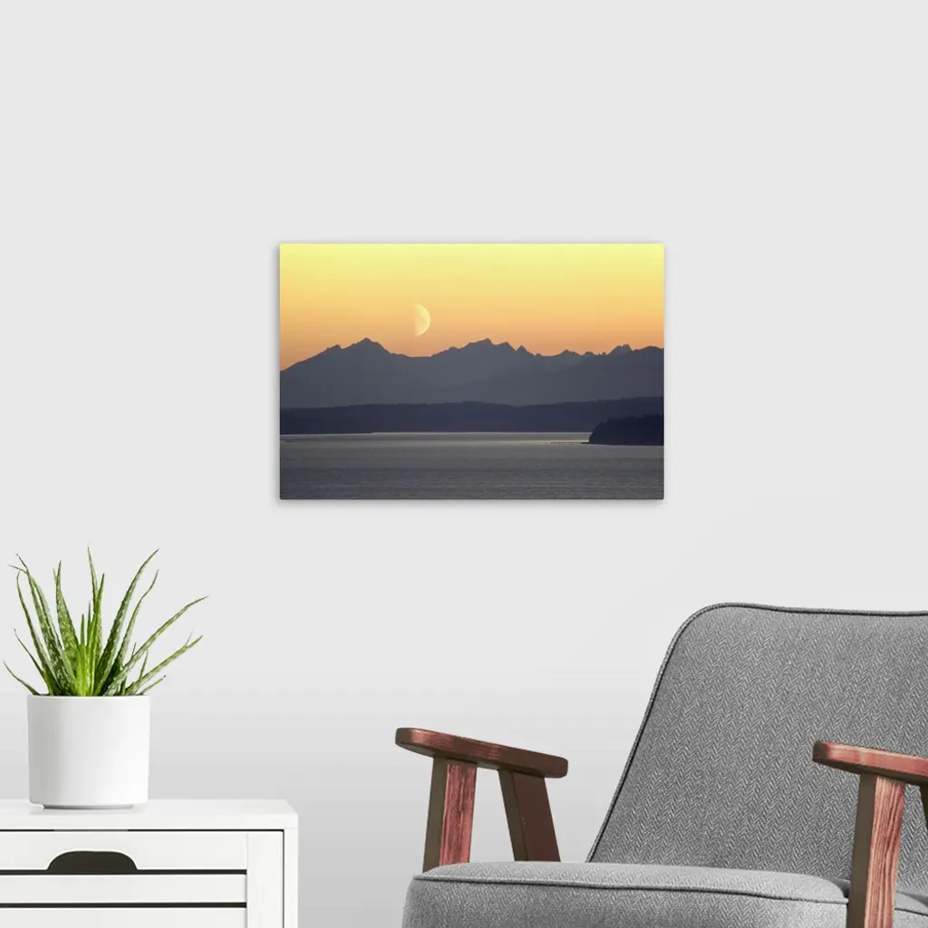 Puget Sound Moonset - Washington wall art for home and office decor. Discover canvas art prints, photos, mural, big canvas art and framed wall art in GreatBigCanvas.com's varied collections.