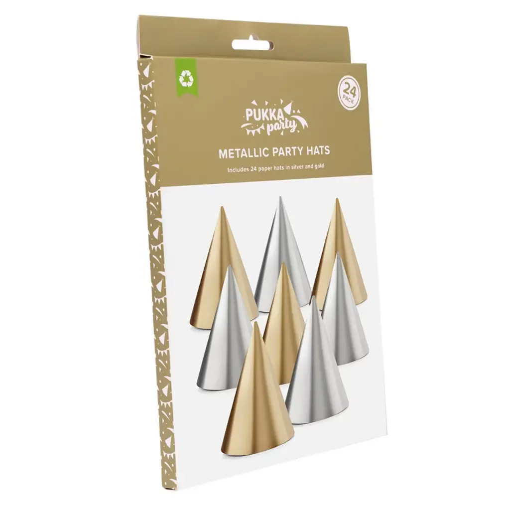 Pukka Party Silver & Gold Party Hats 24 Pcs