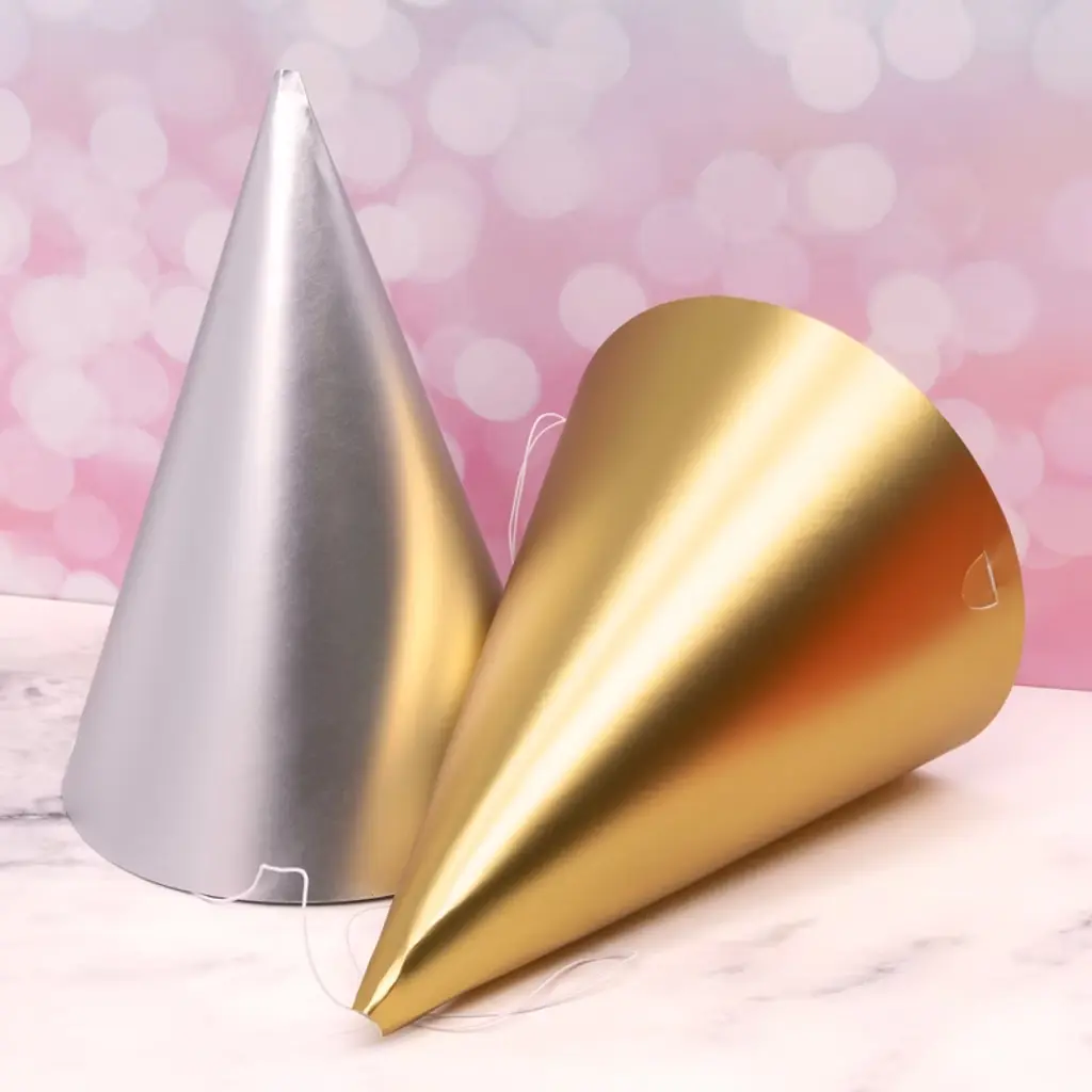 Pukka Party Silver & Gold Party Hats 24 pcs | Party supplies that shine! Go the extra mile! Make that party something special, get the celebrations started with our affordable, stylish silver and gold metallic party hats. Sometimes in life, you just need that little extra to make your party pop! The silver and gold colors means there’s something for everyone, whatever the occasion!