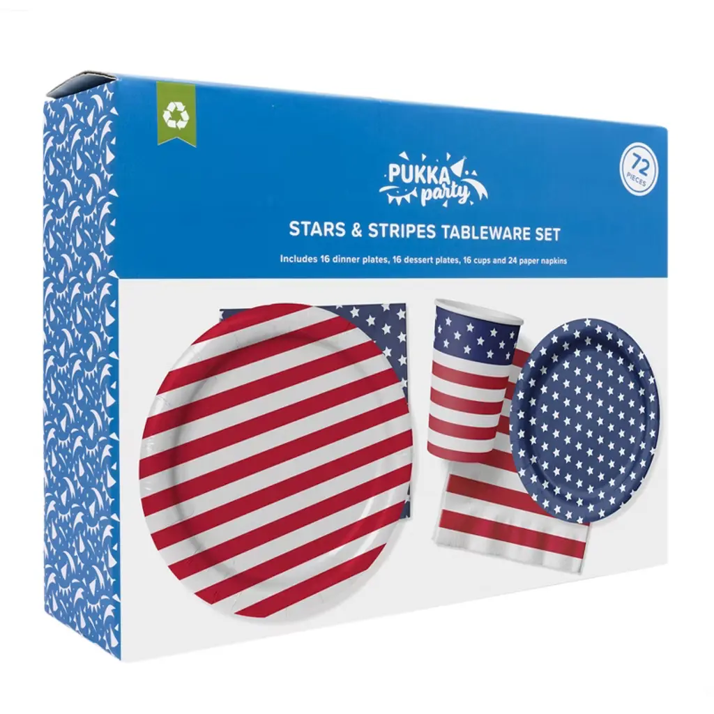 Pukka Party USA Tableware Pack 72 pcs | Celebrate independence day in style! Make the most of your 4th July, Independence Day celebrations! Make that party something special and get in the mood with our affordable, stylish stars and stripes tableware pack. We understand it can be a hassle getting to the store to buy all the individual items you need so why not order one pack with everything already included? We have the perfect tableware pack to help make your day a special one!