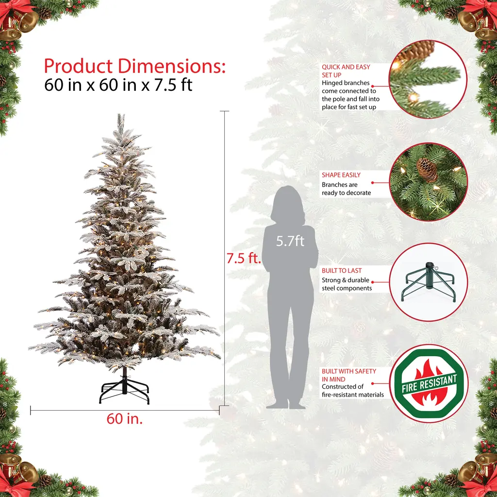 Puleo International 7.5 Ft. Pre-Lit Aspen Fir Flocked Artificial Christmas Tree - 7.5 Foot