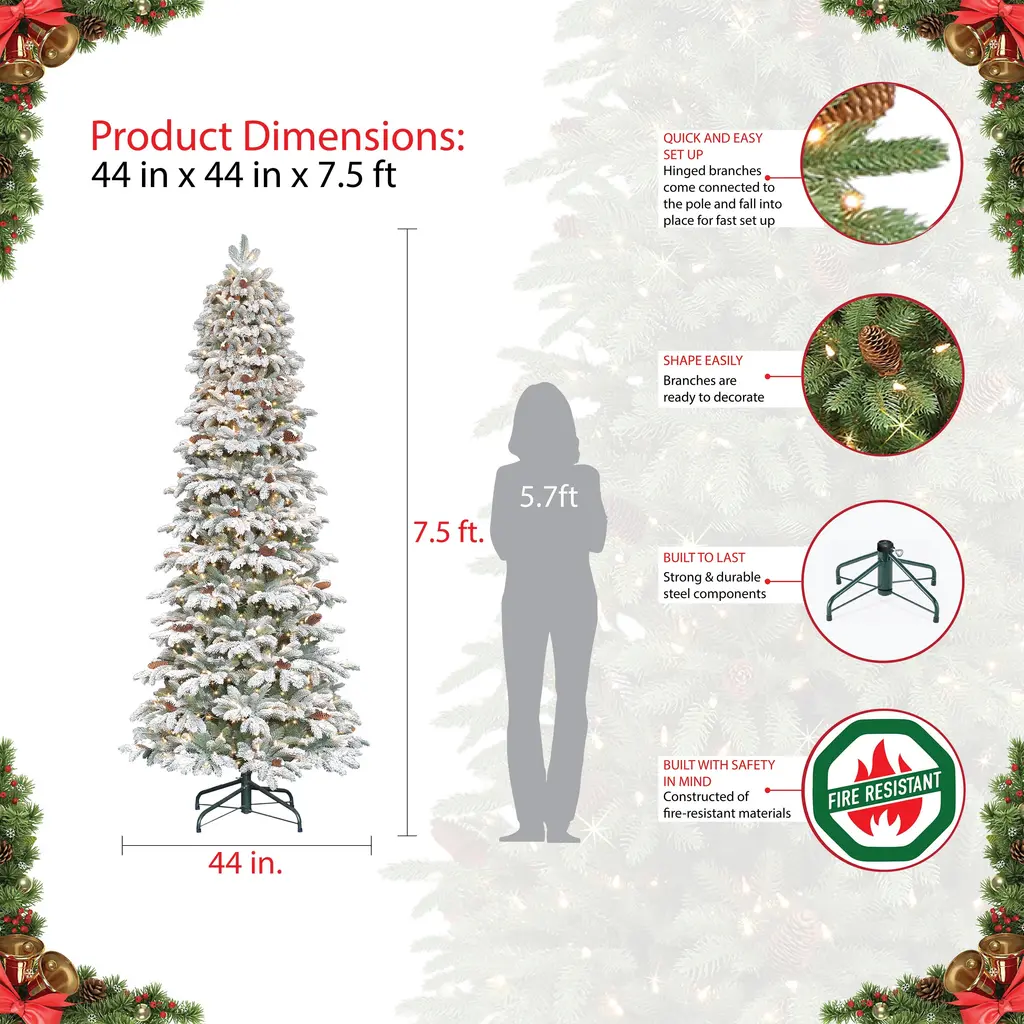 Deck the halls with the Puleo International 6.5-Foot Aspen Fir Tree. Inspired by lush wintry forests, this artificial tree has 903 branch tips (574 PE and 329 PVC) and 500 UL Incandescent Clear Lights. The incorporated lights mean no more climbing ladders to string lights, saving decorating time. When a single bulb burns out, the other lights on the strand will stay lit for your convenience. Hypoallergenic and needle-shed resistant, the tree is a great alternative to a yearly real tree purchase. With easy to assemble pieces and an included base, your house will be ready for the holidays faster than you can say "Rockin' Around the Christmas Tree". Measures 6.5 Foot High x 54 Inch Diameter. 25 Lbs.