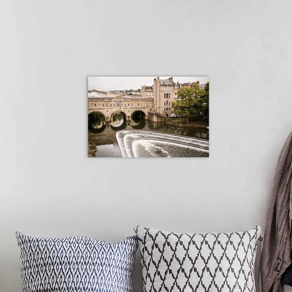 Photograph of the Pulteney Bridge and Weir in the Avon river in Bath, England, UK