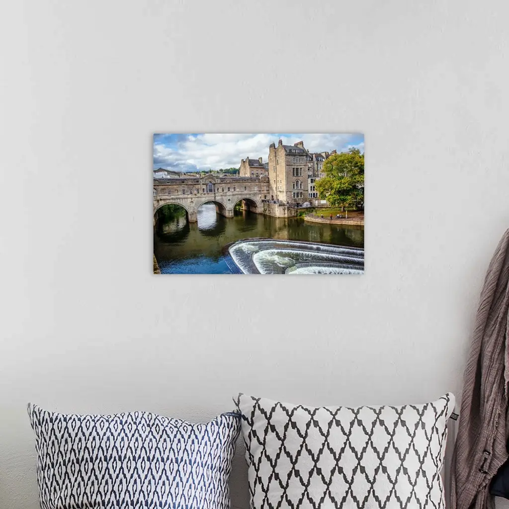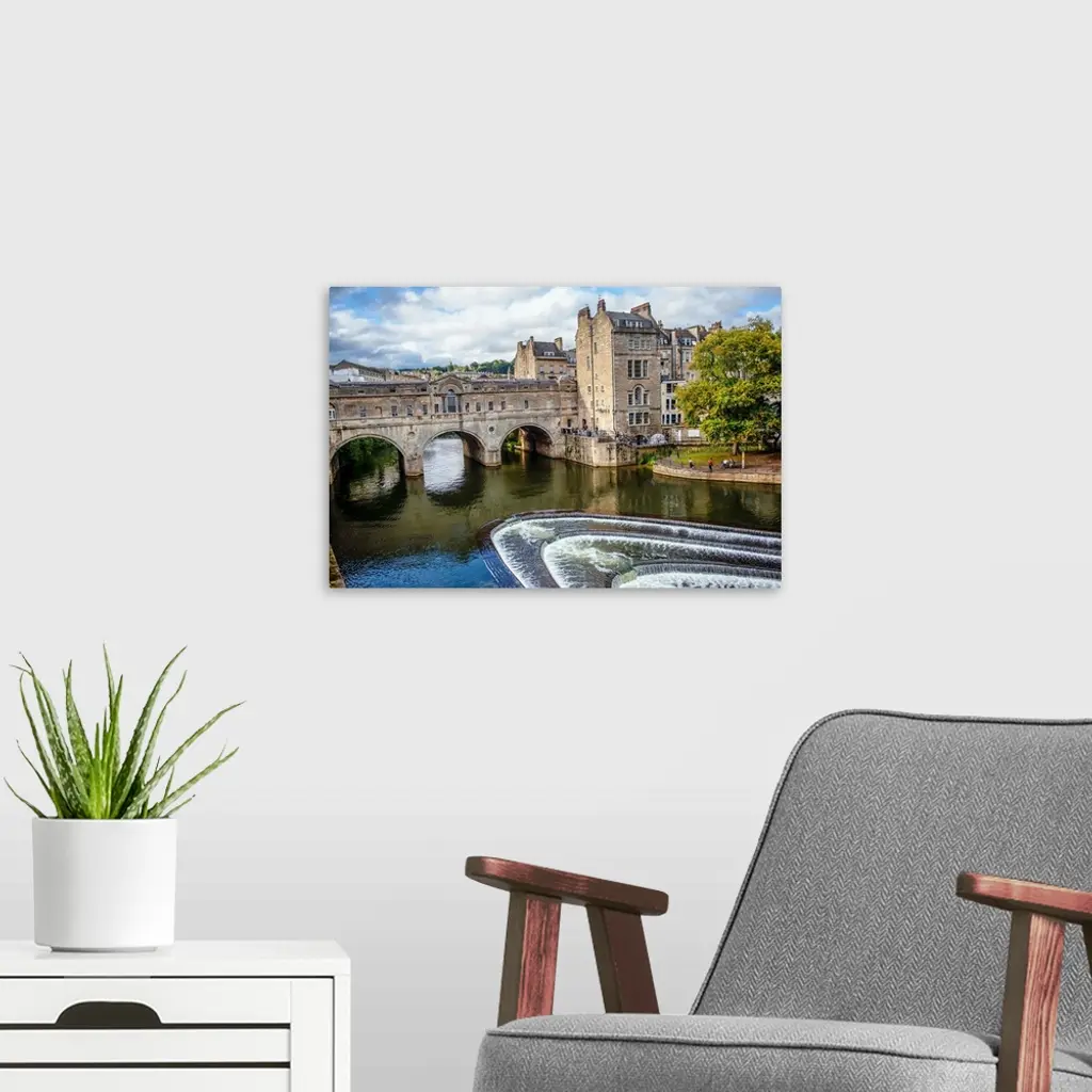 Photograph of the Pulteney Bridge and Weir in the Avon river in Bath, England, UK