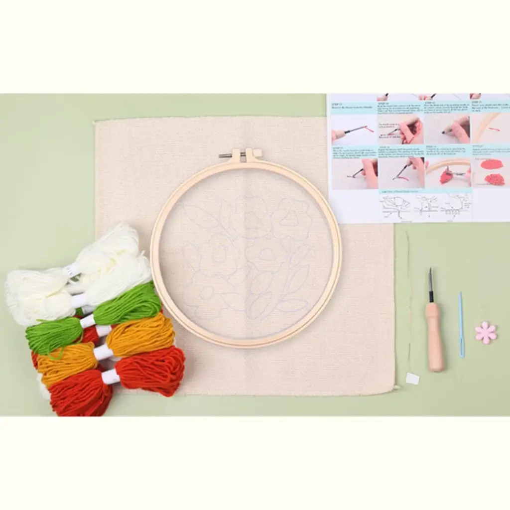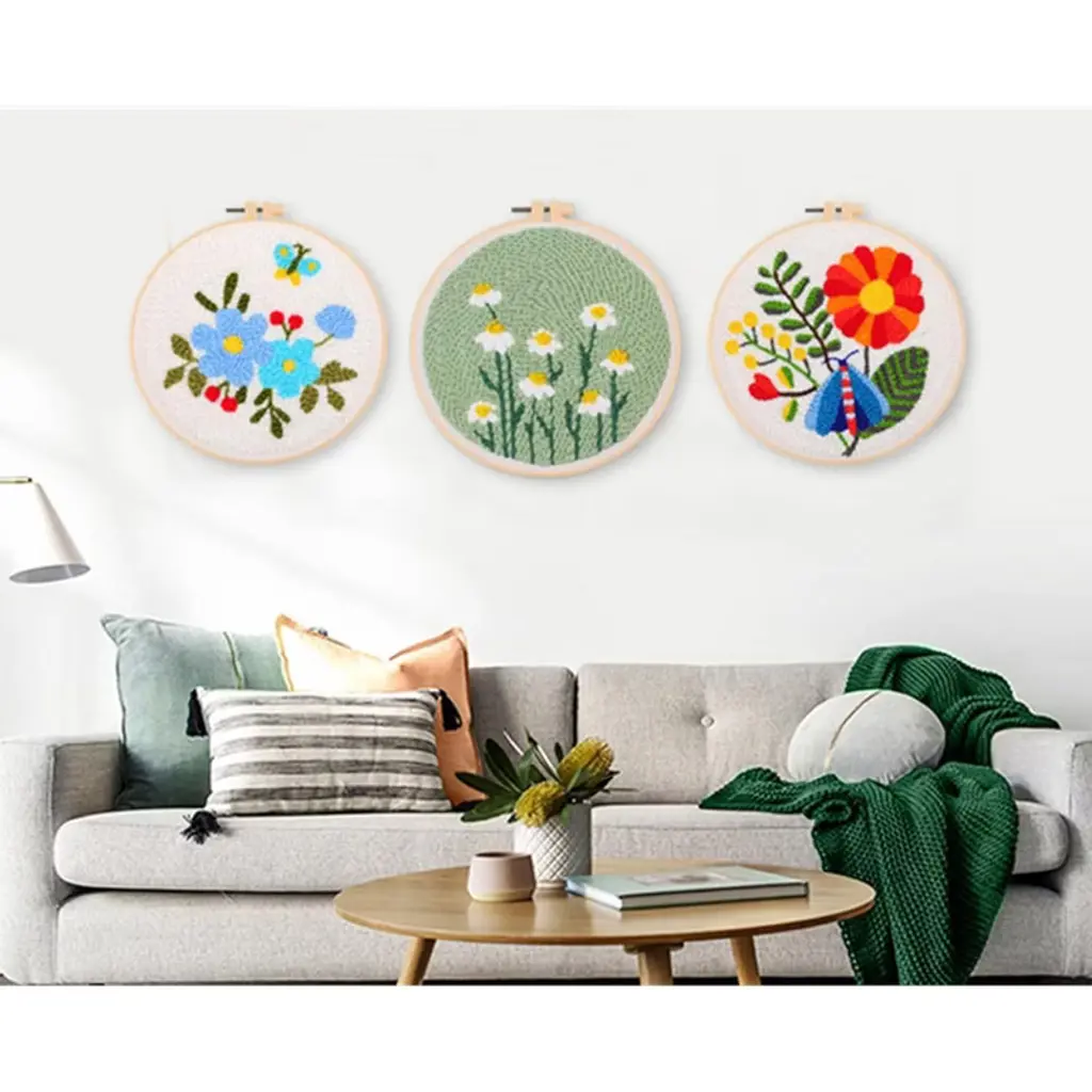 Product Description Product Name: Punch Needle Embroidery Starter Kits with Pattern, Yarns and Embroidery Hoops Product Color: Colorful Product Pattern: Flower, Insects Category: Fabric Embroidery Products Material: cotton fabric, plastic embroidery hoop. Style: Cartoon. Size: canvas 30 x 30 cm, embroidery hoop 20 x 20 cm. Package content: 1 set of embroidery tools with piercing needle.