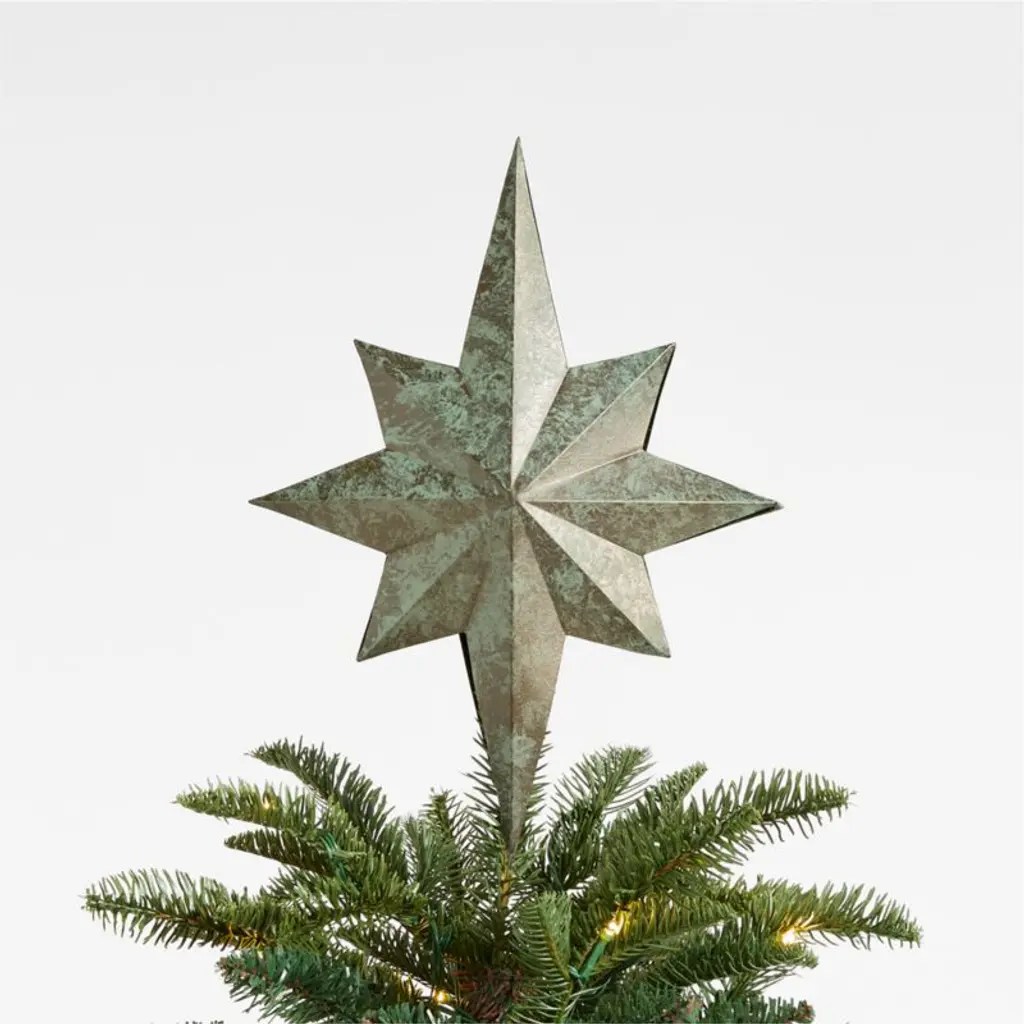Top your tree with ornate elegance in the form of a three-dimensional star. Perforated with whorls of petite punched holes, the ornate star gleams warmly with an aged brass finish. We love the way our exclusive Christmas tree topper looks gorgeous from all angles of the room.