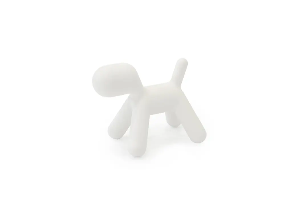 Created by Eero Aarnio, master of Scandinavian design culture and innovator on the international scene ever since the sixties, Puppy is a little dog as imagined by the great designer, whose aim was to see through children’s eyes when they draw puppies. A head, a body and legs: essential, rounded shapes that come to life in a friendly, playful, durable and colourful object. Made of polyethylene, and produced using rotational moulding, the piece is guaranteed to be both sturdy and lightwei- ght, ready for endless moments of play and fun, both in the house and out of doors. Puppy comes in orange, white, green and “dalmatian”, and in four different sizes, all made to measure for children, their tastes and their spaces.Available in different sizes and color