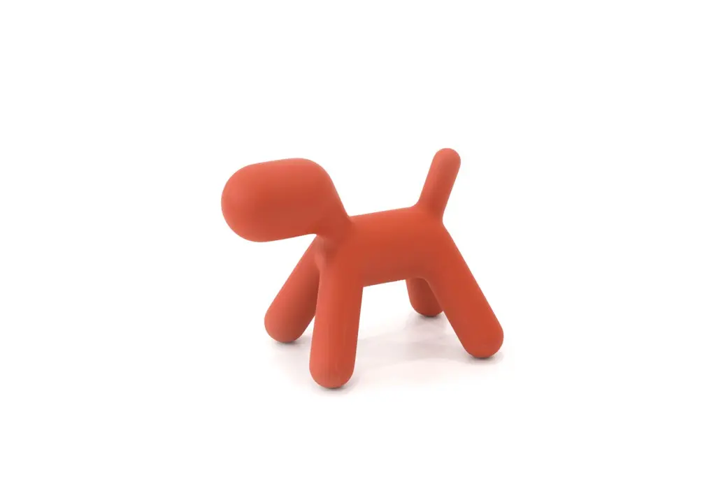Created by Eero Aarnio, master of Scandinavian design culture and innovator on the international scene ever since the sixties, Puppy is a little dog as imagined by the great designer, whose aim was to see through children’s eyes when they draw puppies. A head, a body and legs: essential, rounded shapes that come to life in a friendly, playful, durable and colourful object. Made of polyethylene, and produced using rotational moulding, the piece is guaranteed to be both sturdy and lightwei- ght, ready for endless moments of play and fun, both in the house and out of doors. Puppy comes in orange, white, green and “dalmatian”, and in four different sizes, all made to measure for children, their tastes and their spaces.Available in different sizes and color