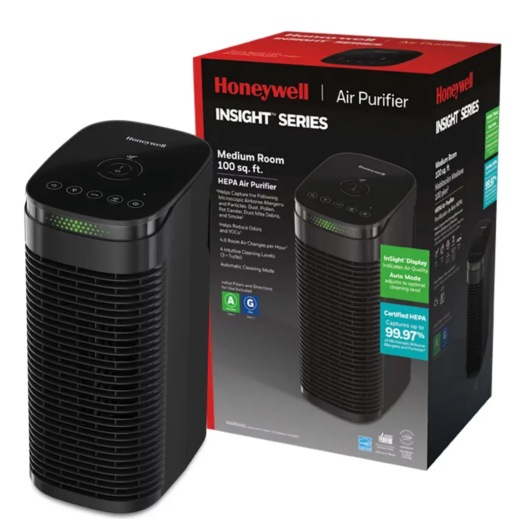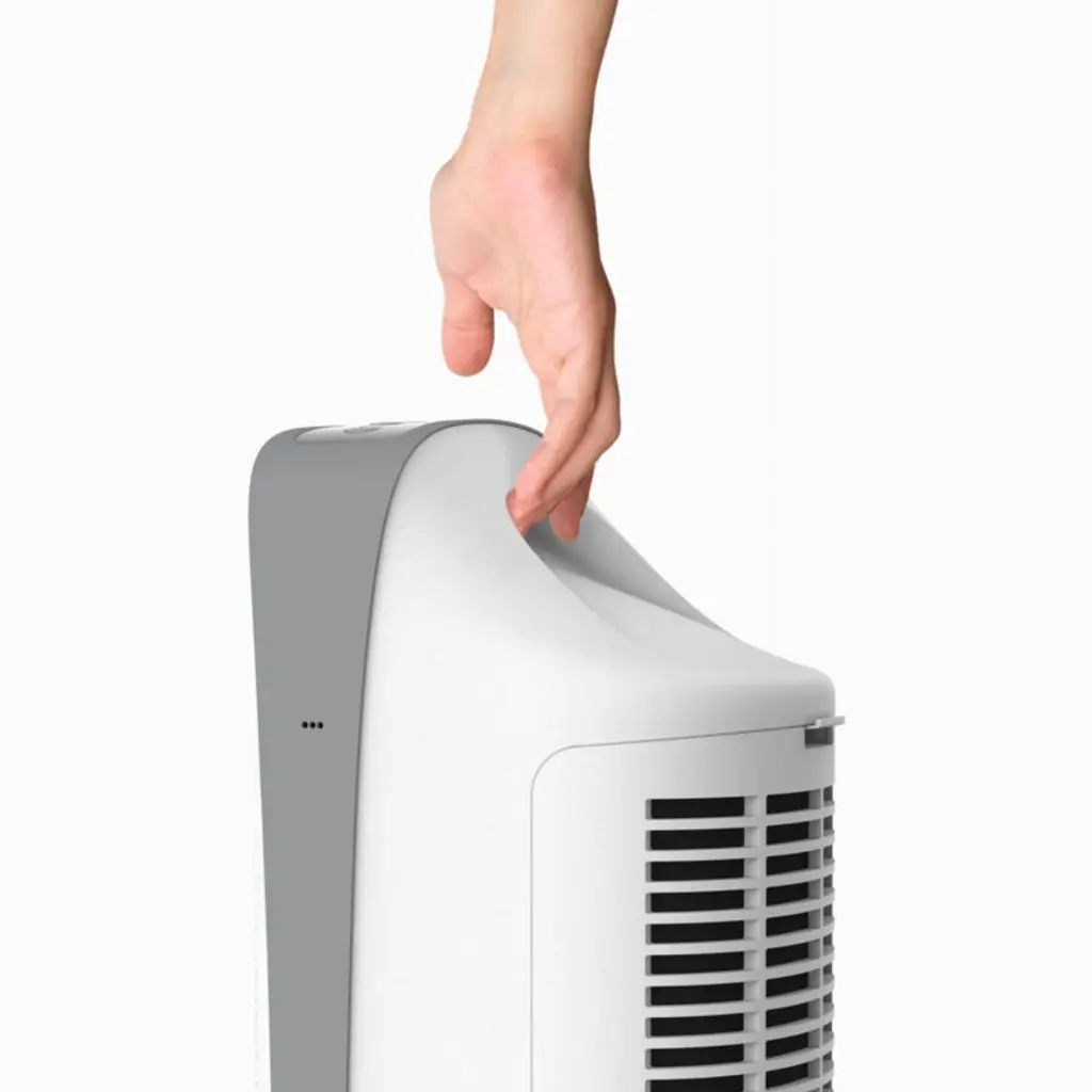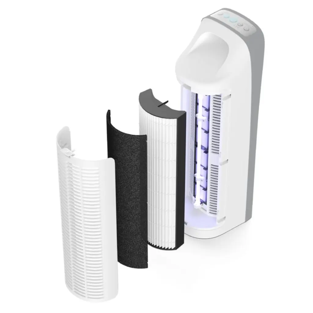 Enjoy healthier, breathable air in your office or home. Featuring a space-saving tower design, this air purifier safely eliminates germs, viruses, bacteria and small particles from the air. Using a four-stage purification process that combines a pre-filter, a True HEPA filter, UV-C light with photocatalyst filter and ionizer, the purifier removes 99.97% of particles from the air. Great for those suffering from allergies, asthma or breathing issues, the purifier adjusts fan speed automatically when air particles are detected.