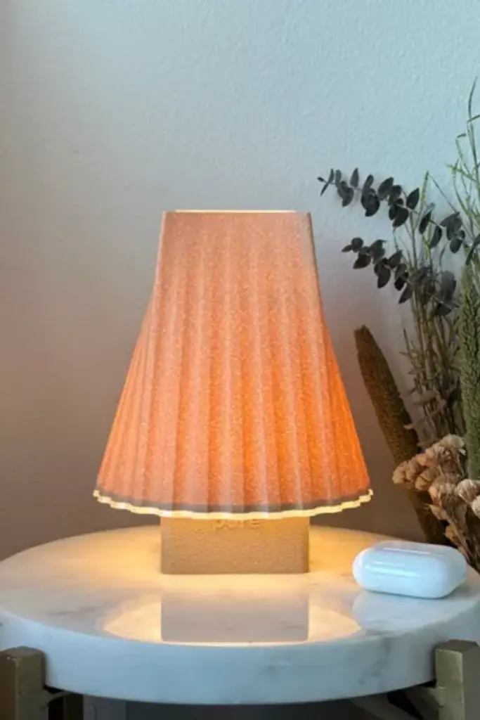 Please note that all items are made to order in California and require a 3–5 day lead time before shipping. Designed for moments when you want just the right glow, the Ambi Lamp is a compact, wireless light that moves with you. Whether it’s setting the mood for dinner, winding down at bedtime, or adding a soft pop of color to your shelf or nightstand, Ambi delivers versatile lighting in a minimalist form. Tap through 15 solid hues or choose from three white tones (warm, neutral, cool), all fully dimmable to fit the mood. It’s remote-controlled, rechargeable via USB-C, and includes an optional auto-off timer (30, 60, or 120 minutes) — perfect for relaxing evenings or gentle wake-ups. Lightweight, cordless, and endlessly useful. **Content + Care** \- PLA body (bioplastic made from renewable resources) \- PETG translucent top and base \- Wireless with rechargeable 2000mAh battery \- Remote included (controls brightness, color, timer) \- USB-C charging cable included \- Wipe clean with soft cloth \- Made in the USA **Size + Fit** \- Lamp: 6"h x 3.5"w x 3.5"d \- Weight: 0.6 lbs \- Battery life: Up to 12 hours per charge"