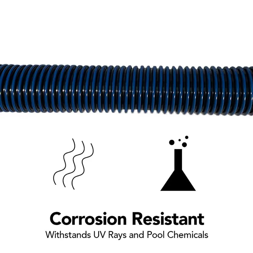 Looking for a reliable and durable vacuum hose for your inground swimming pool? Look no further than the Puri Tech Inground Swimming Pool Vacuum Hose! Measuring 1.5 inches in diameter and 35 feet in length, this hose is designed to work with all pool vacuum systems and is equipped with a swivel cuff for kink-free maneuverability.But that's not all - this vacuum hose also boasts a range of features that make it a top choice for pool owners. The thick crown construction provides wear and abrasion resistance, while the spiral wound construction ensures maximum flow rate, strength, and flexibility. Plus, the hose is protected against UV and chemical damage, so you can be confident it will last for many swimming seasons to come.And if you're concerned about crush resistance, you'll be pleased to know that this hose has superior tensile strength to prevent crushing and ensure smooth operation. So whether you're a pool maintenance professional or a homeowner looking to keep your pool sparkling clean, the Puri Tech Inground Swimming Pool Vacuum Hose is an excellent choice. Order yours today and experience the difference!