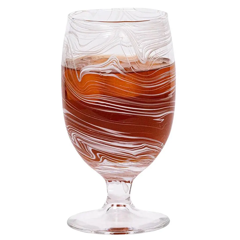 Like swirling water and the decorative pages of Florentine leather-bound books, this marbled goblet adds an eclectic splash to your everyday table with its captivating motif. These chic vessels are perfect for your morning juice and add a super stylish layer to place settings - the abstract pattern mixes beautifully with everything.