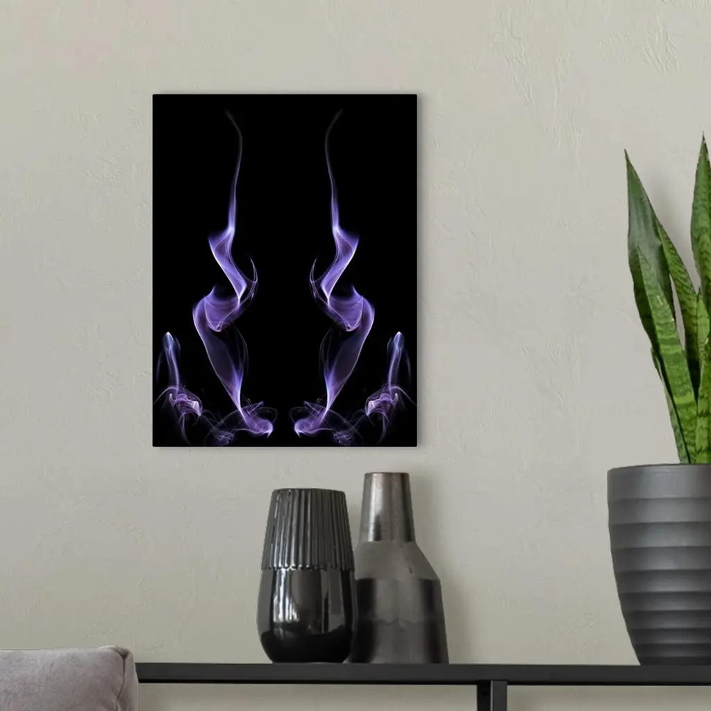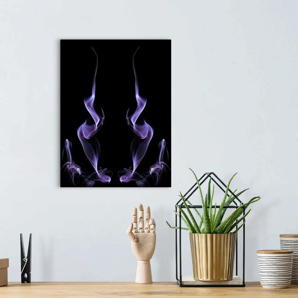 Abstract symmetrical image of purple colored smoke, resembling fire.